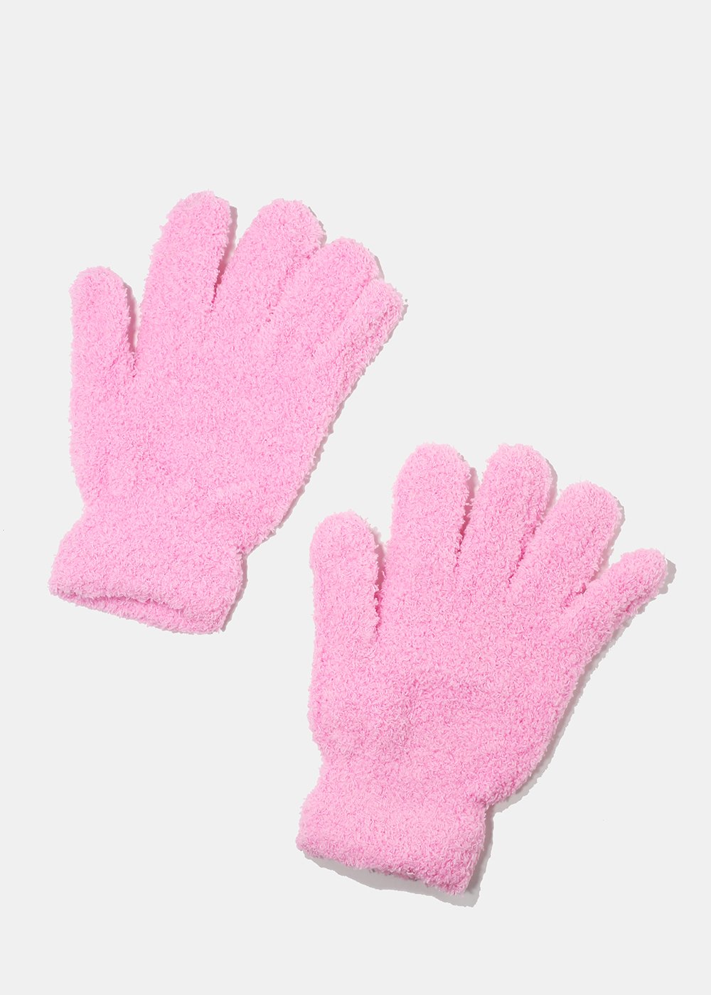 Keep hands toasty with these super soft, fuzzy gloves in solid tones to pair perfectly with any cold weather outfit!