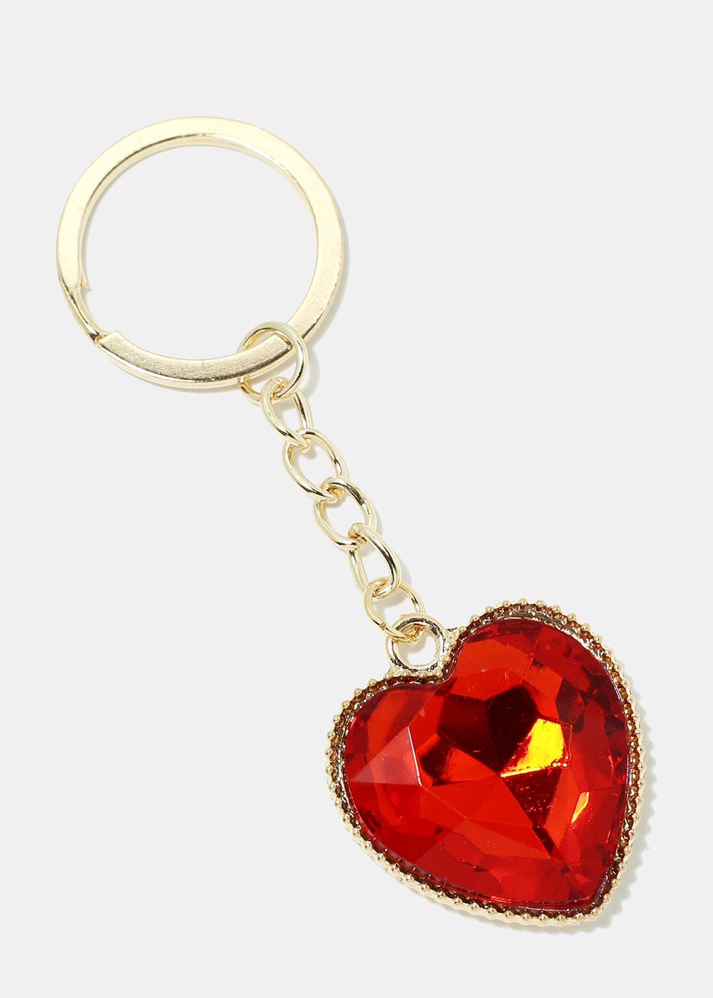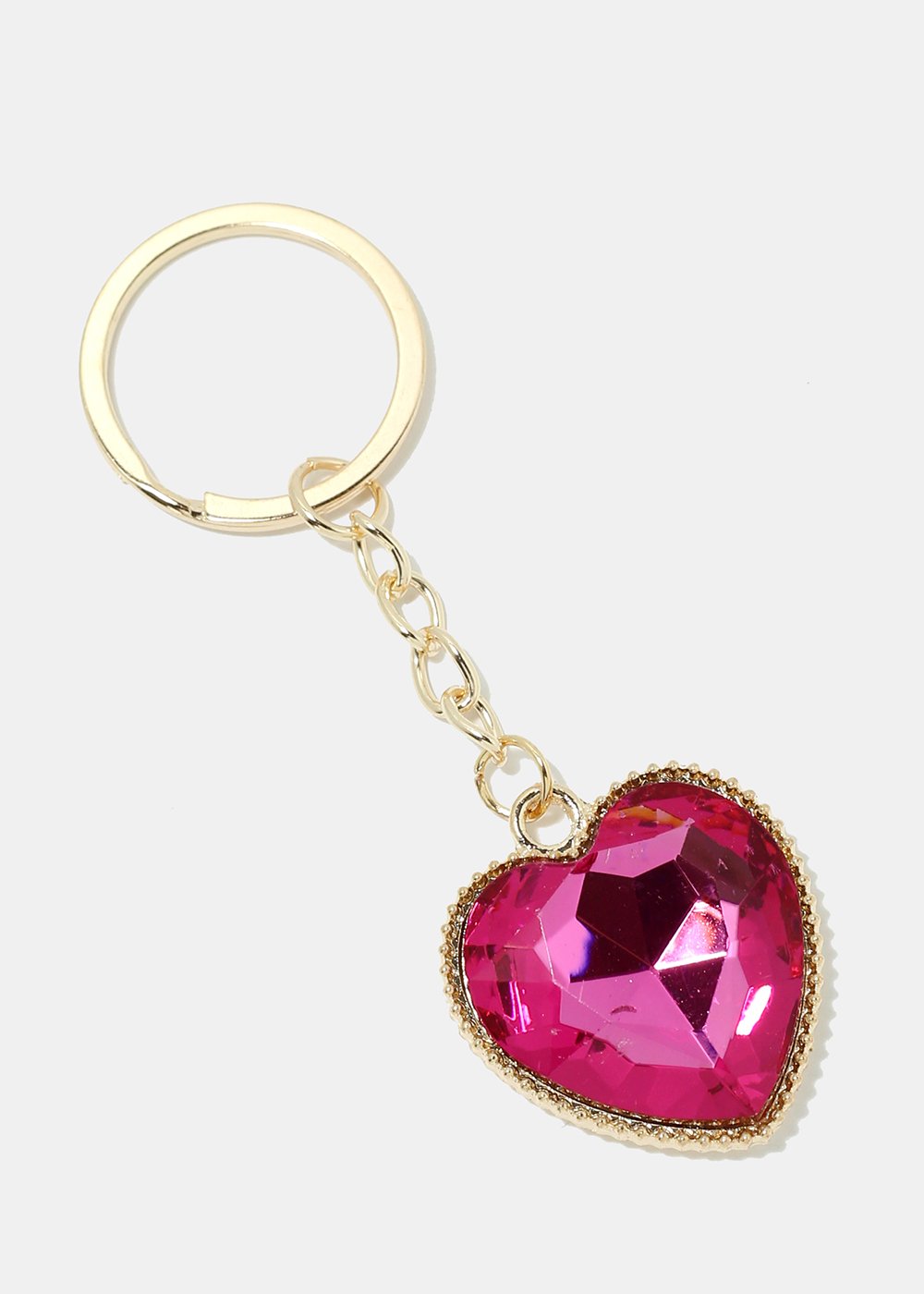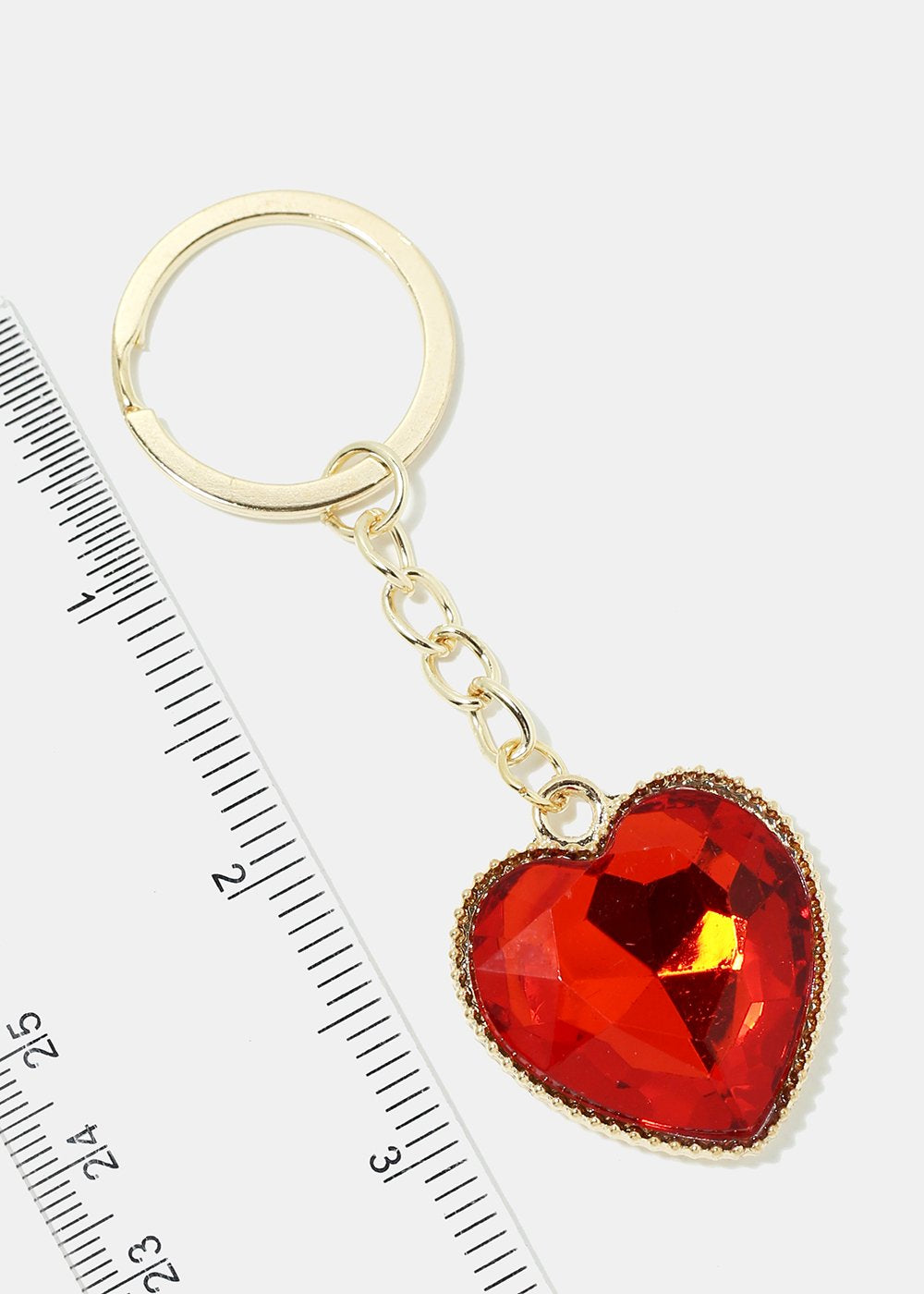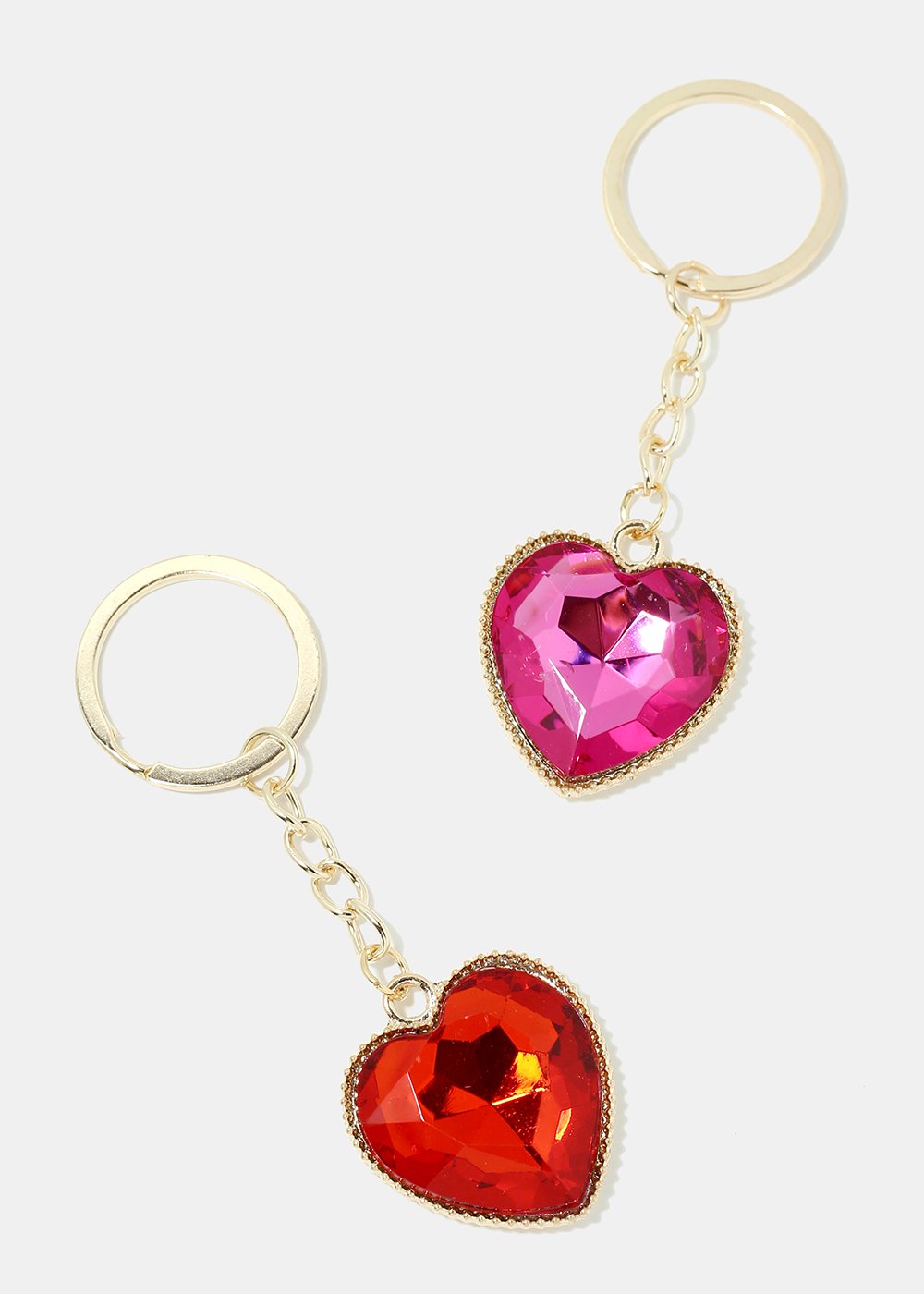 Sparkly gemstone heart key chain in pink and red. A sweet romantic touch to your belongings from your keys, purse, to your back pack! Nice for a gift to give to your loved ones!