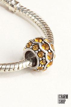 Add instant charm and sparkle to your personalized bracelet or necklace, with this antique bead charm accented in gold crystals. PANDORA STYLE EUROPEAN BEAD BRACELET, THESE BEADS ARE COMPATIBLE WITH PANDORA BRACELETS. * BRACELET NOT INCLUDED.