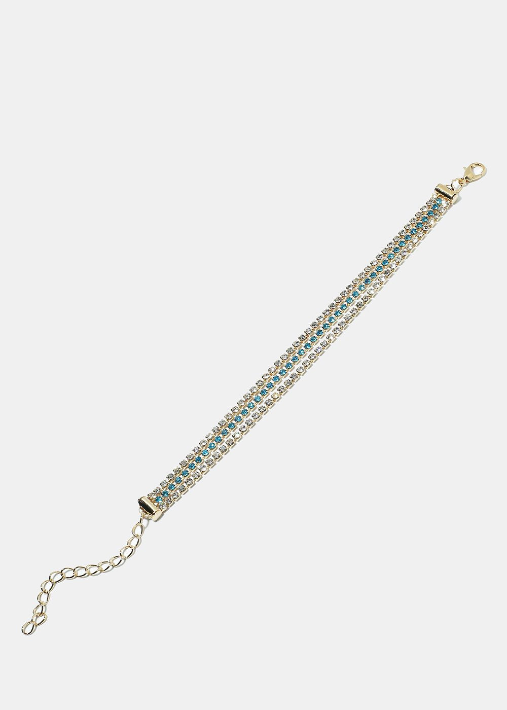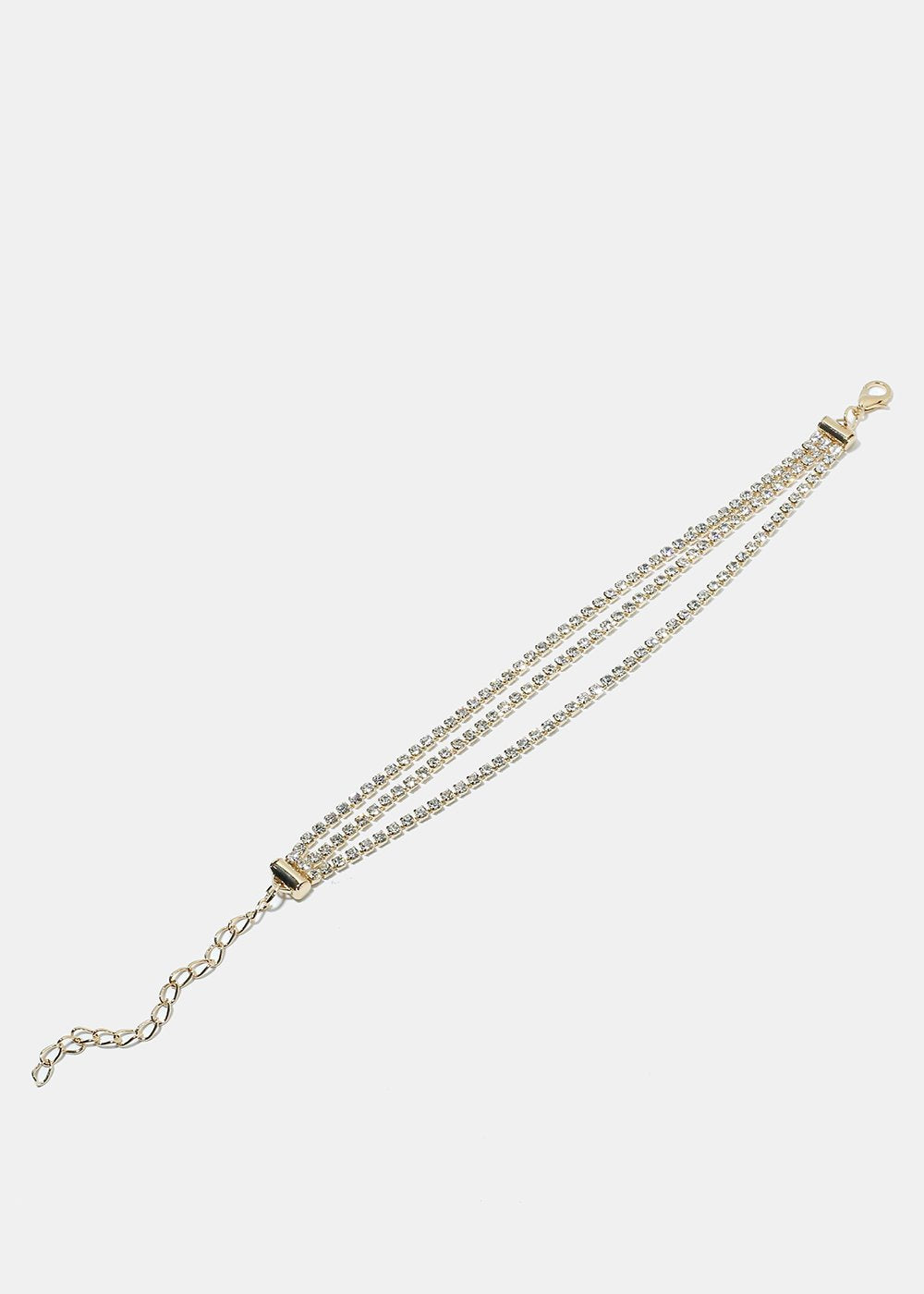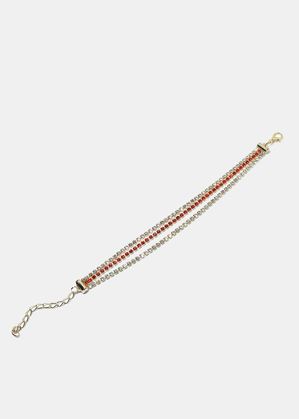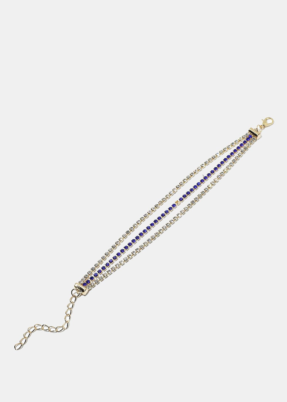Add the finishing glam touch to your ensemble with this stunning gold layered rhinestone studded bracelet in multiple colors to choose from! Adds a pretty sparkly touch and a pop of color!