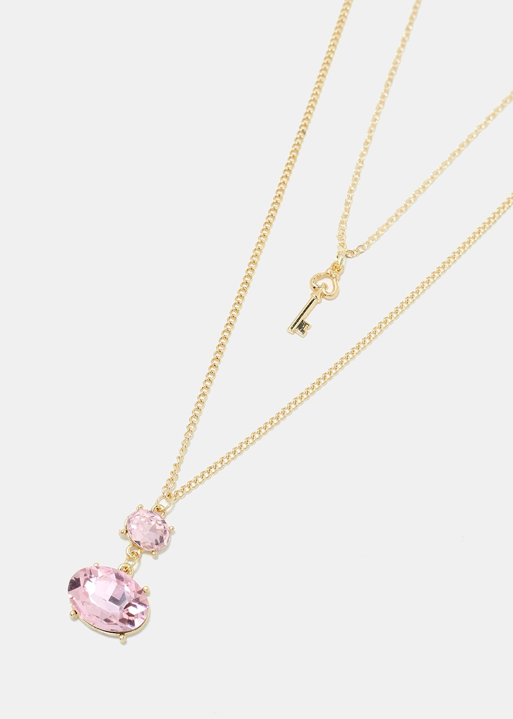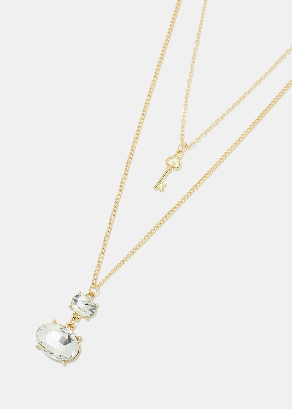 Layered gemstone and key pendant necklace