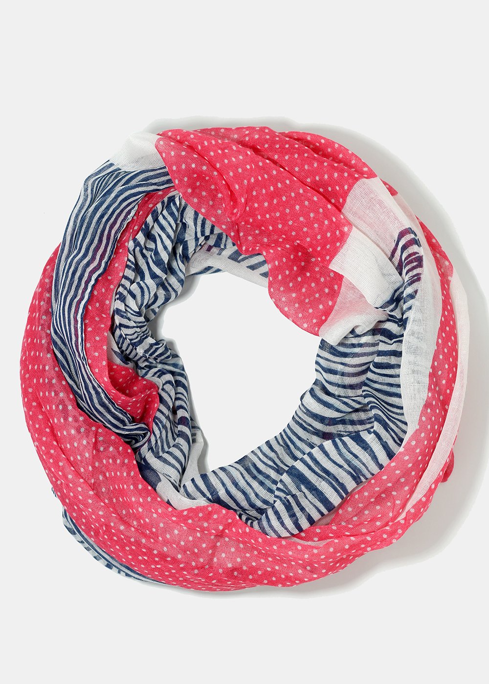 Add a fun and trendy touch to your casual look any time of year with this lightweight scarf with a mix of cute prints and colors! An easy and stylish way to pull any casual outfit together!