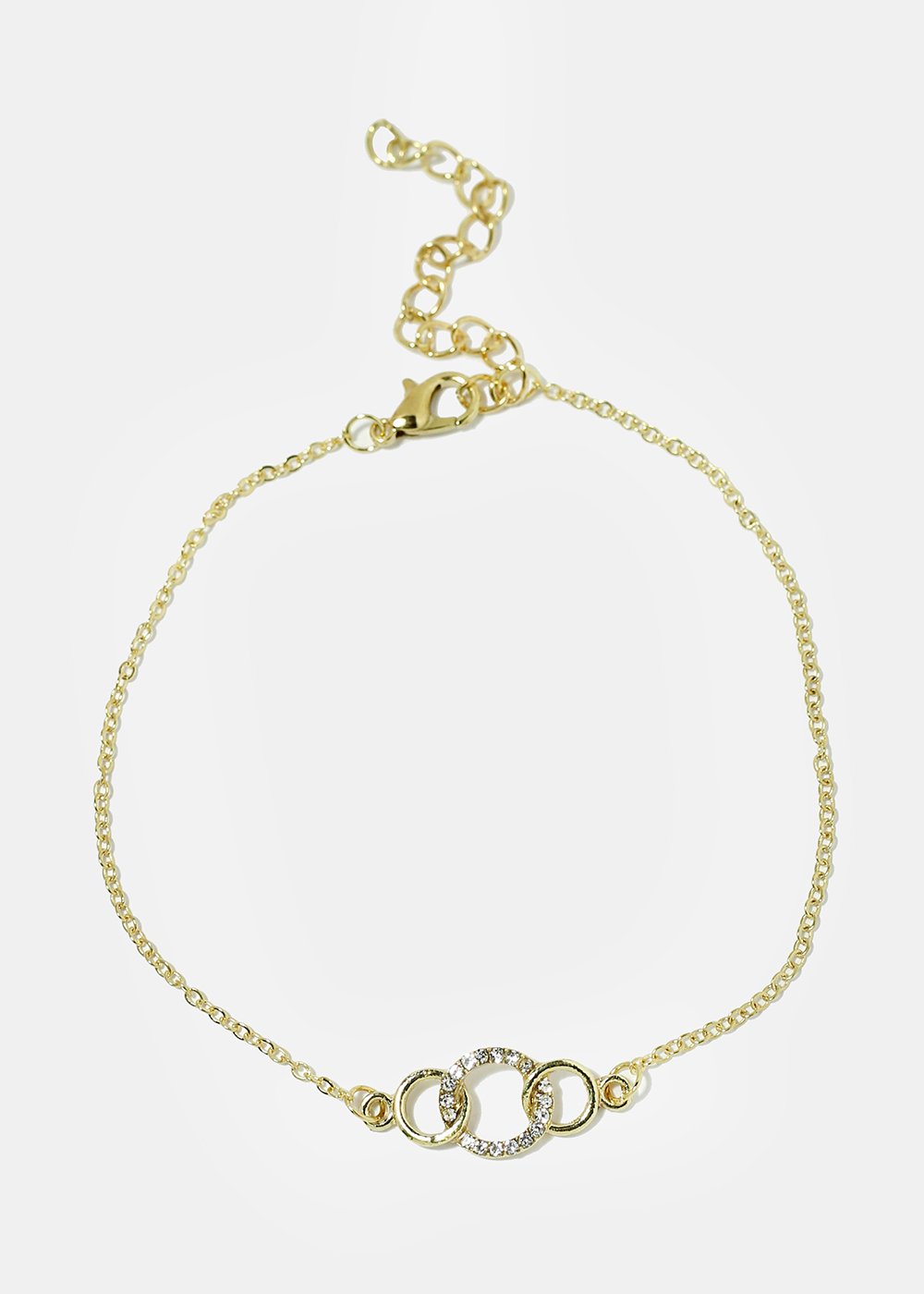 Add a fine touch of sparkle to your look with this circle linked rhinestone studded bracelet. Pair it easily with a simple casual look to a super glam look! A must-have in your collection!