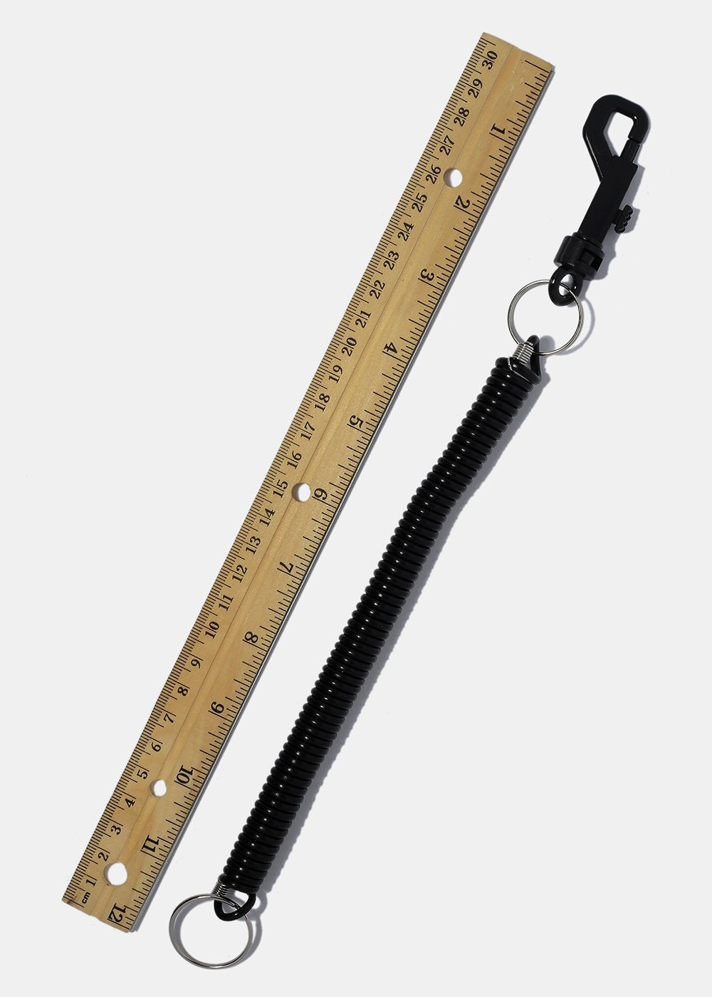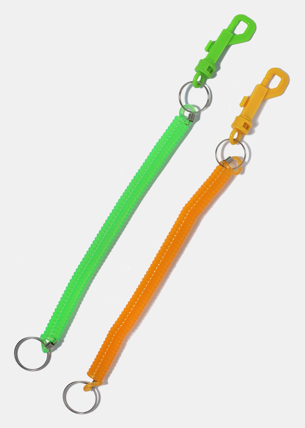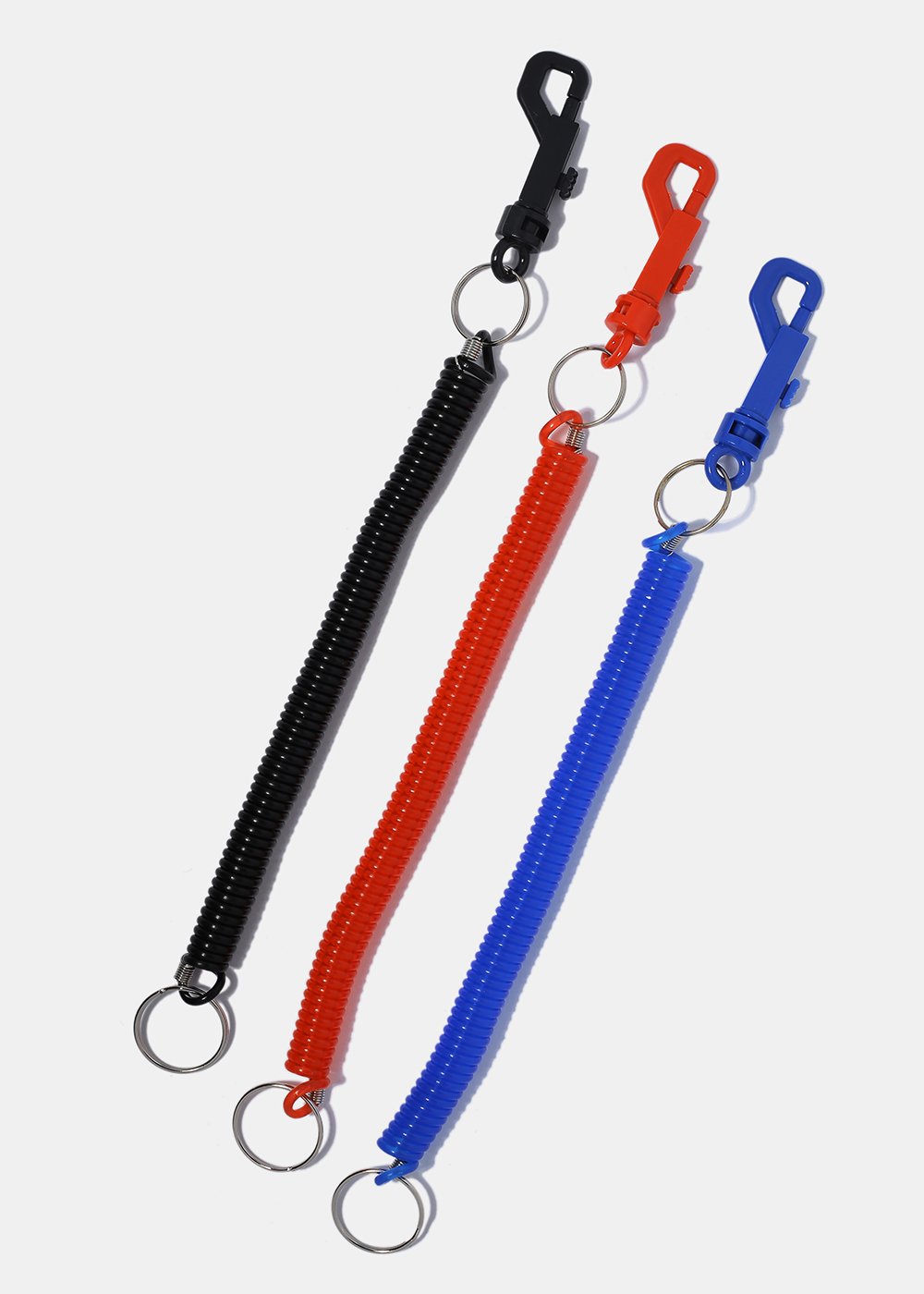 Long stretch coil keychain features key ring to attach keys and swivel clip to clip on to belt loops or bag for easy access!