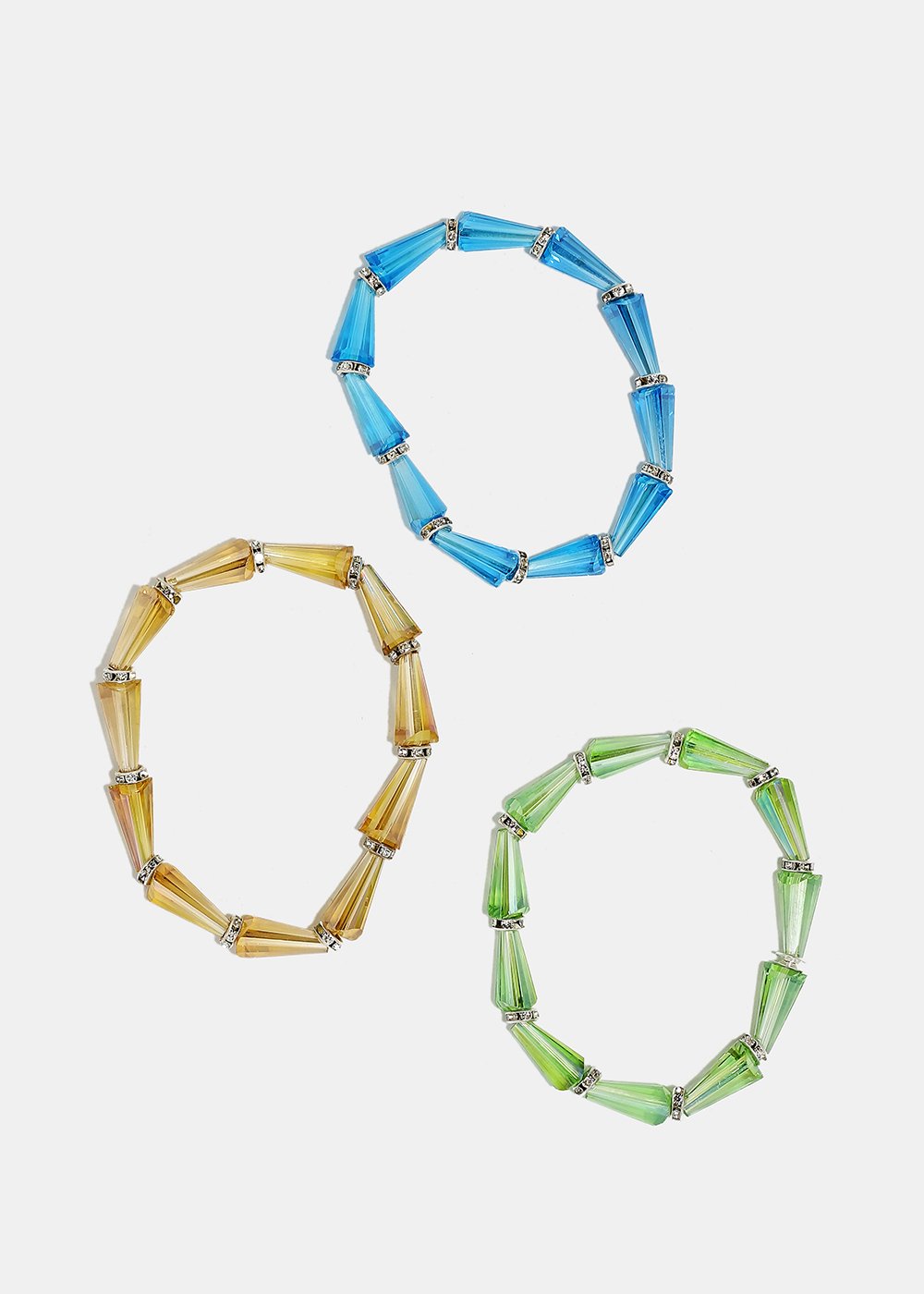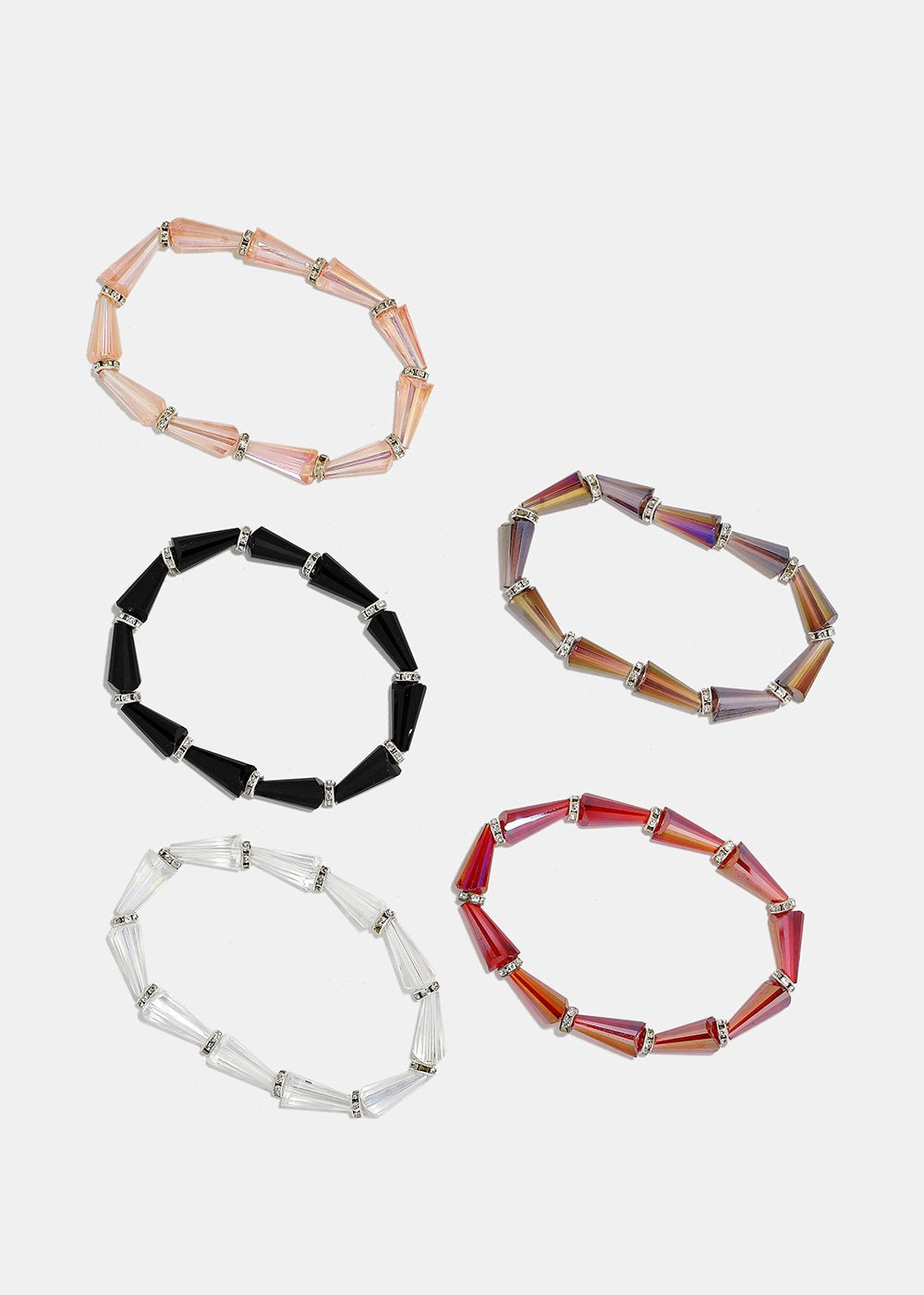 Stretch bracelet with long translucent beads and rhinestone spacers. Adds a simple yet cute touch to any look!