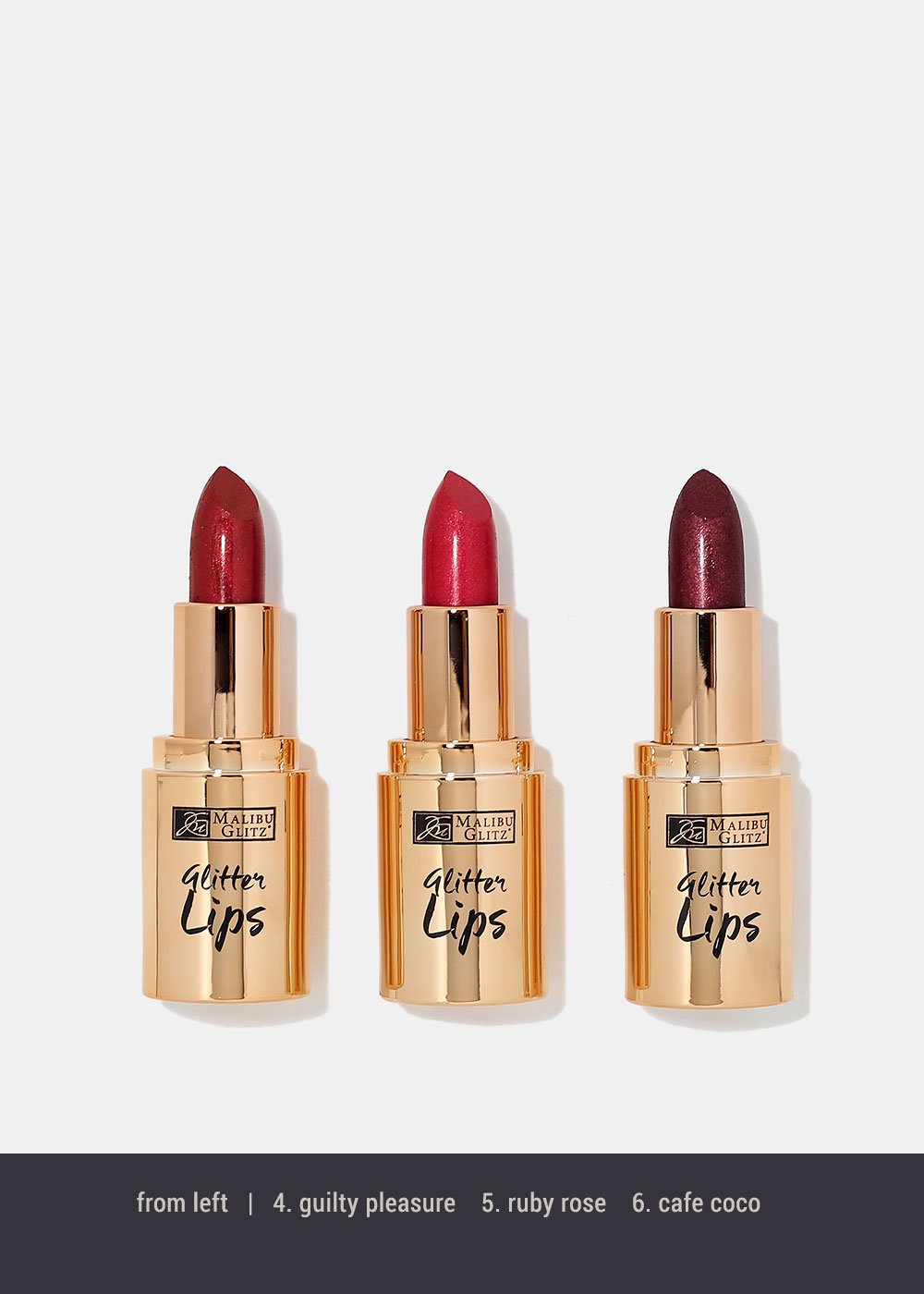 Malibu Glitz Glitter Lips- metallic lipsticks with fine glitter to give lips a glam look!