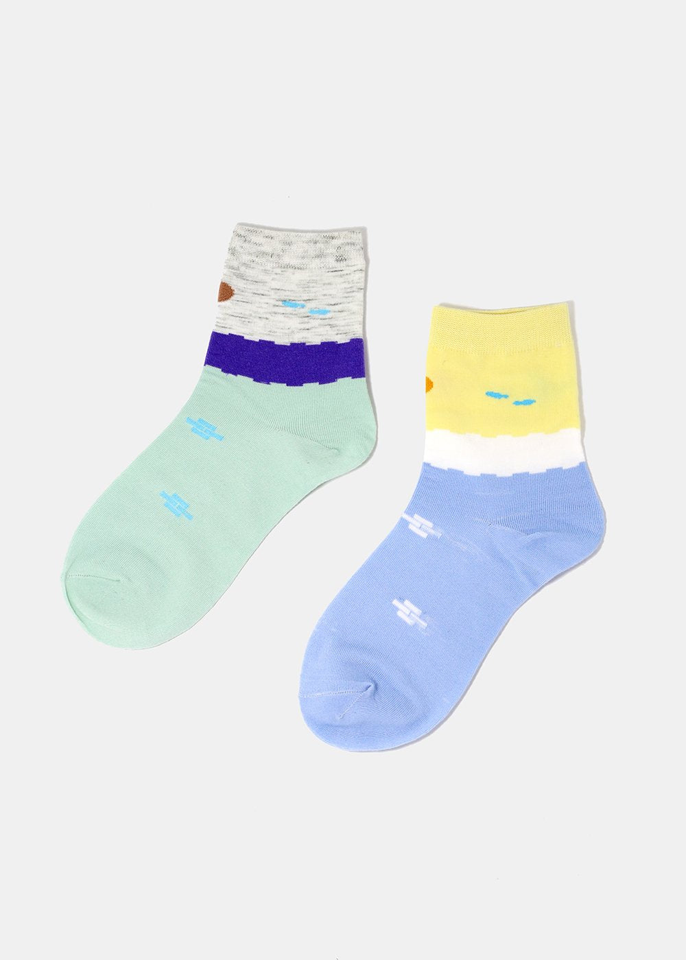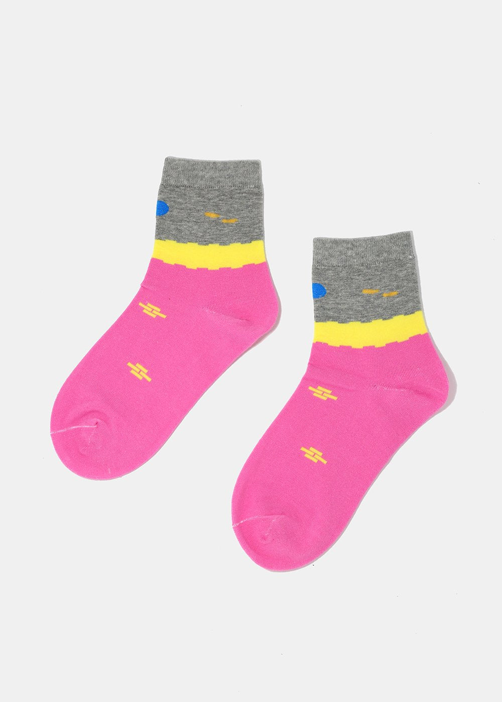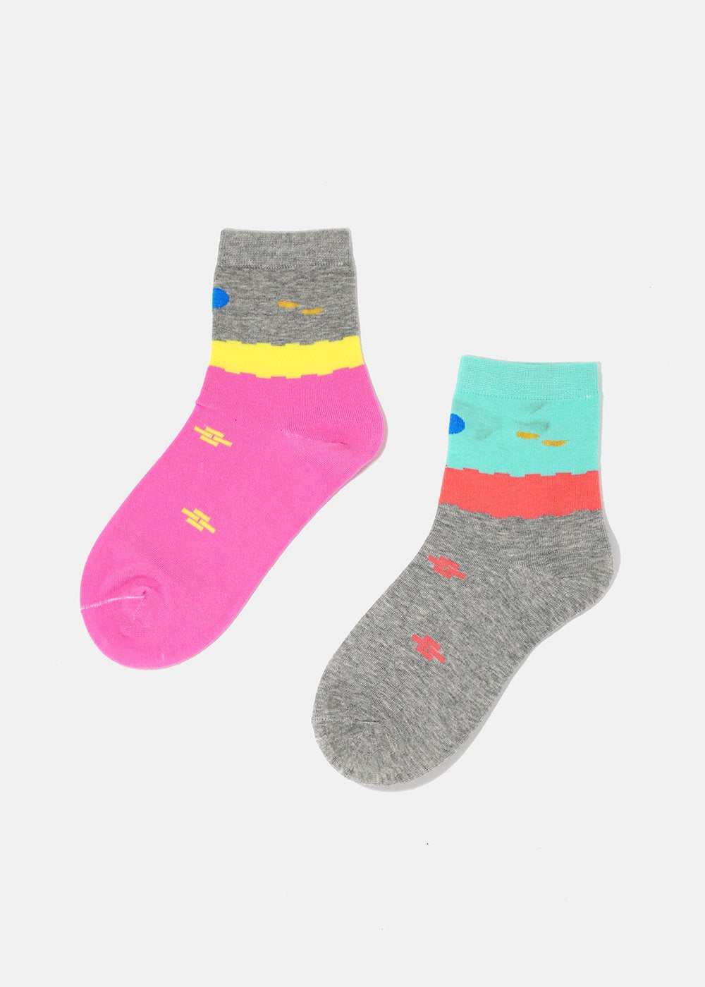 Comfy crew socks featuring color blocking design in bright and fun colors! Fits women's shoe sizes 5-10.