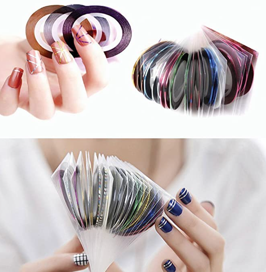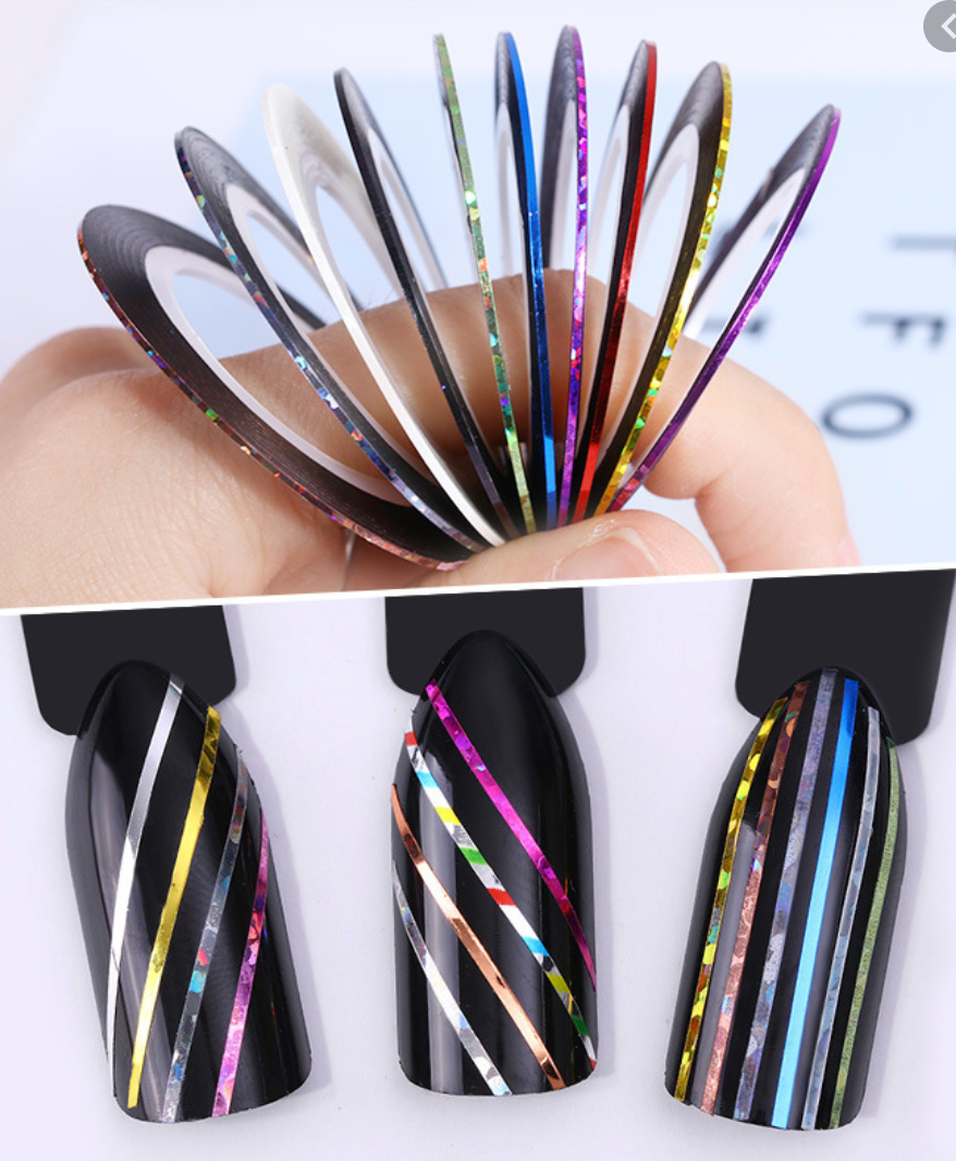 This metallic Nail Striping Foil is prefect for creating your ow unique designs! Fun and easy to use! Apply clear top coat for long lasting wear!