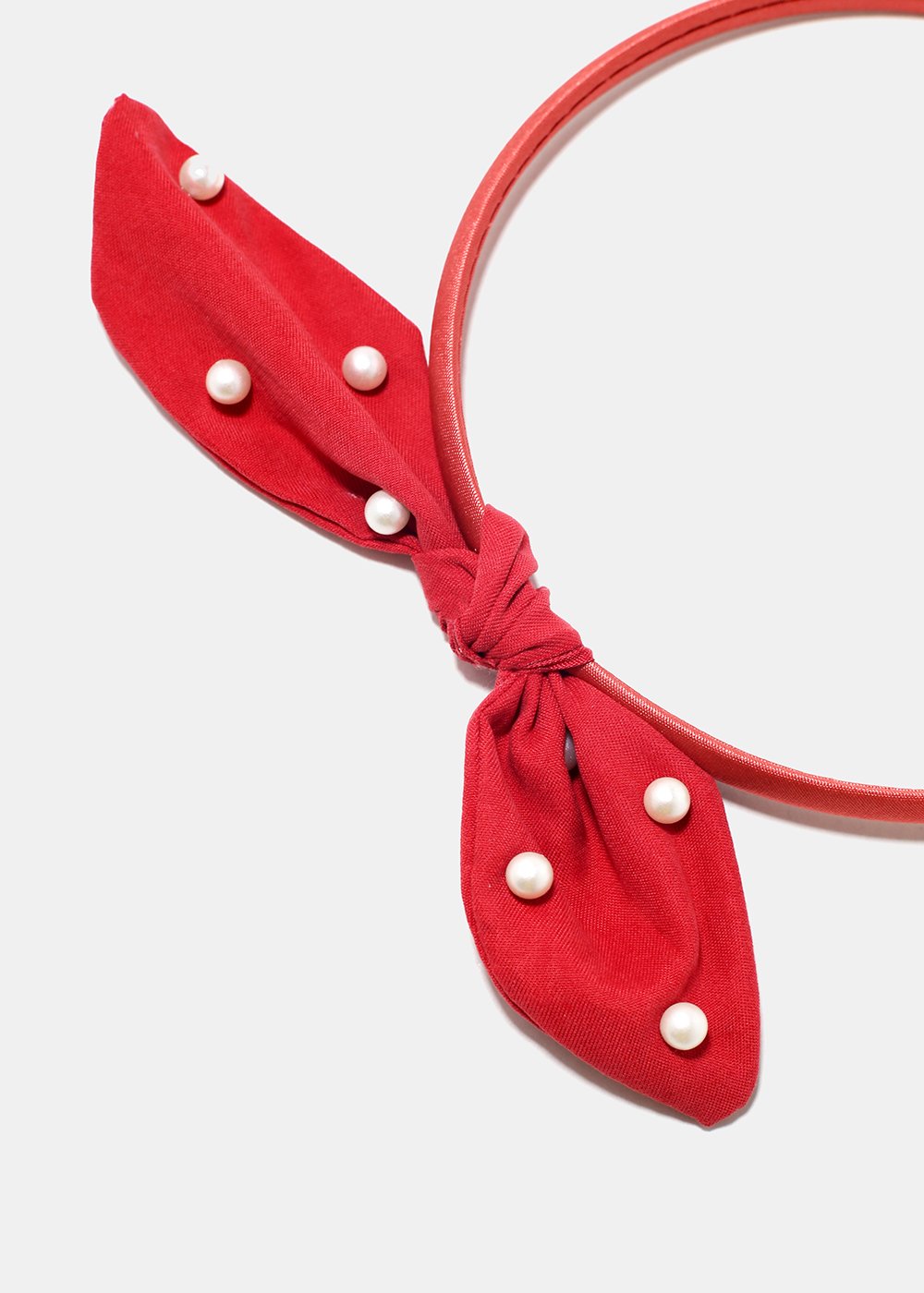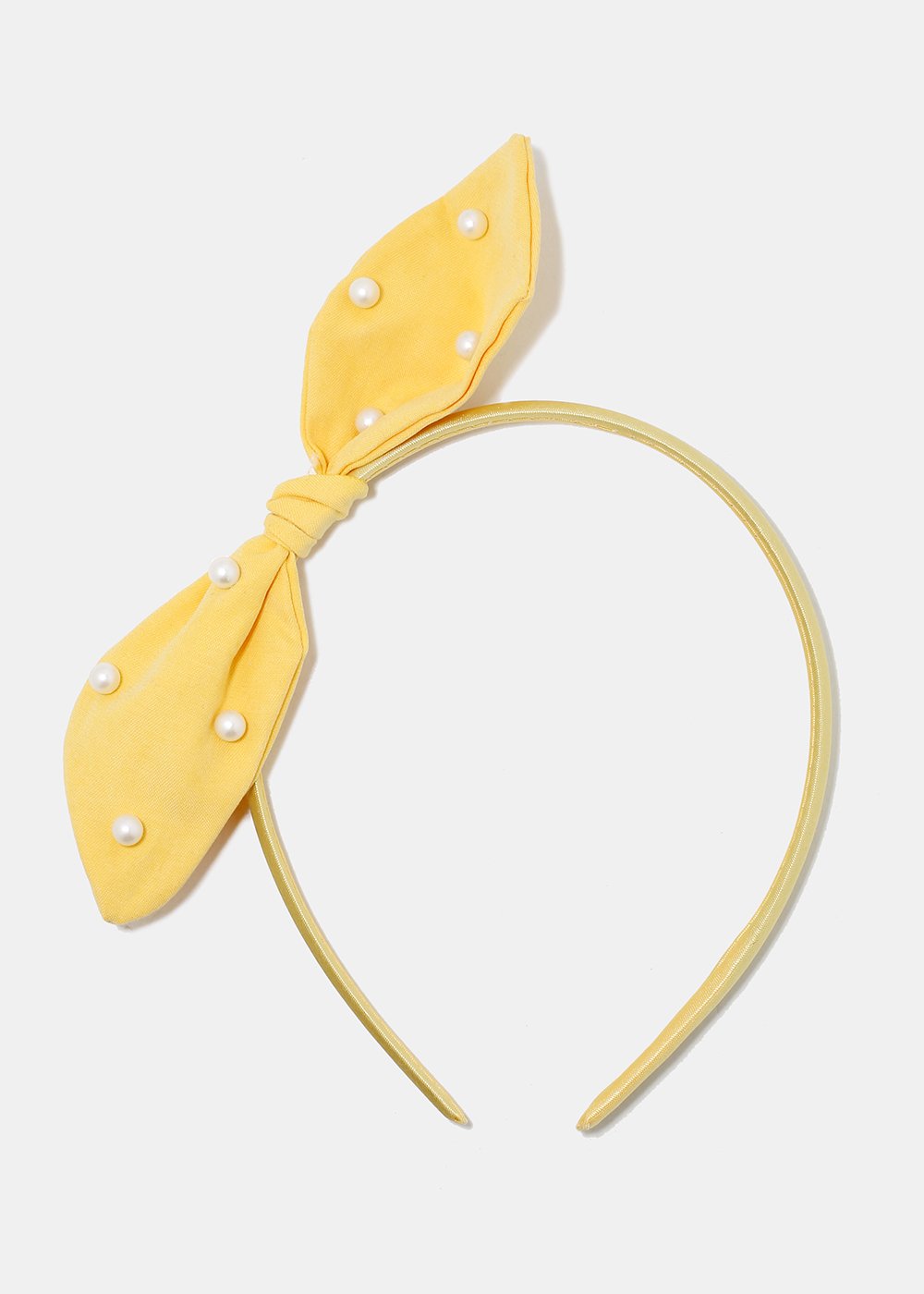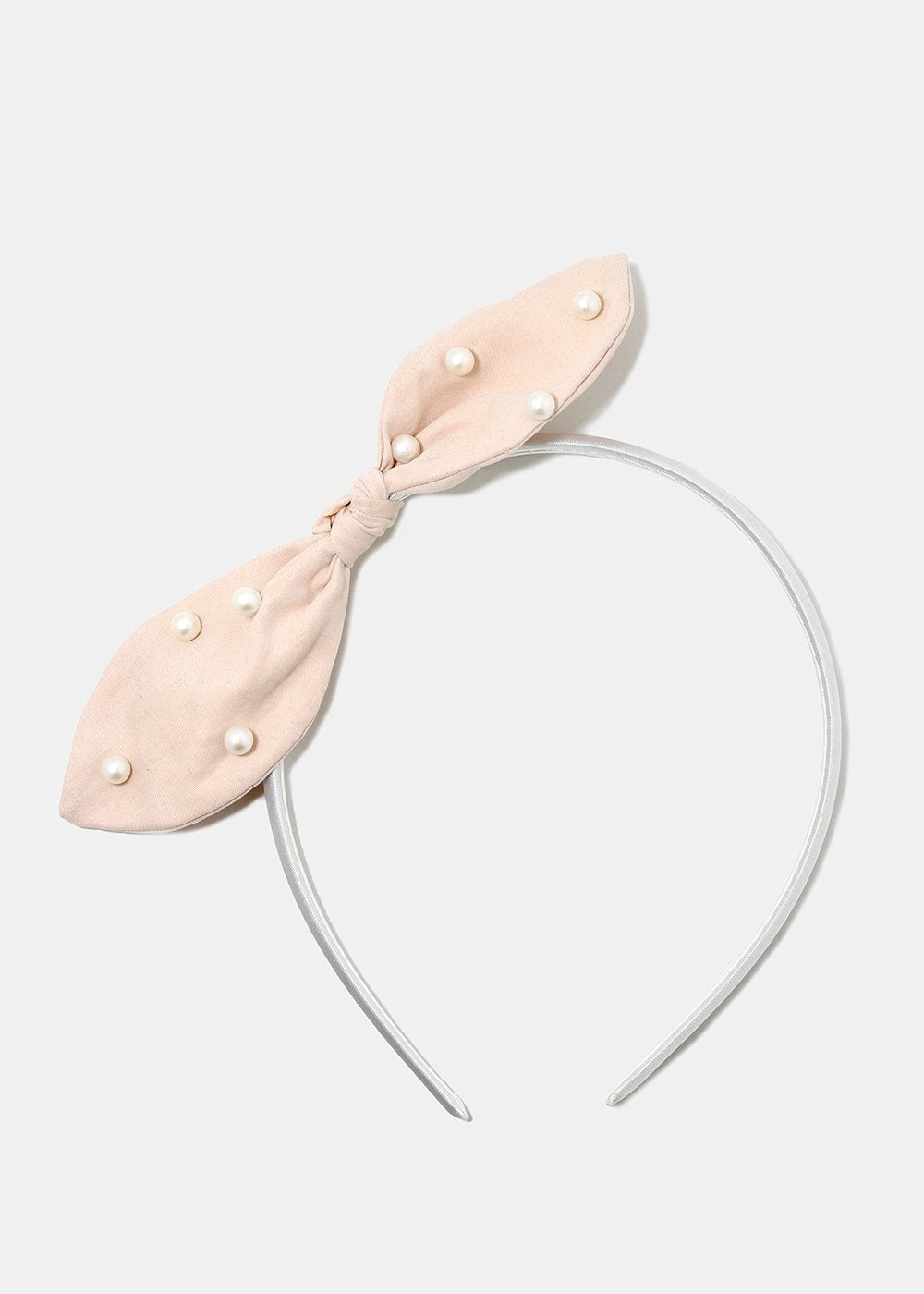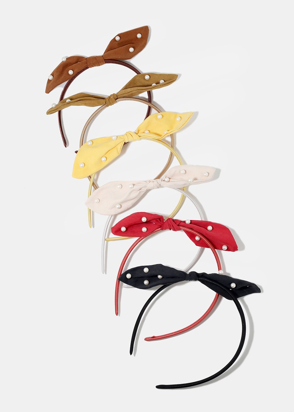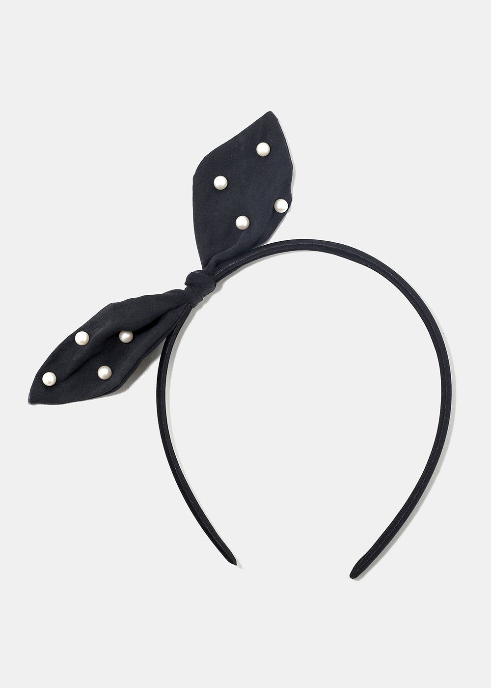 Complete a casual look with a sweet and chic finish with this thin headband pearl-studded bunny-ear bow. An adorable final touch!