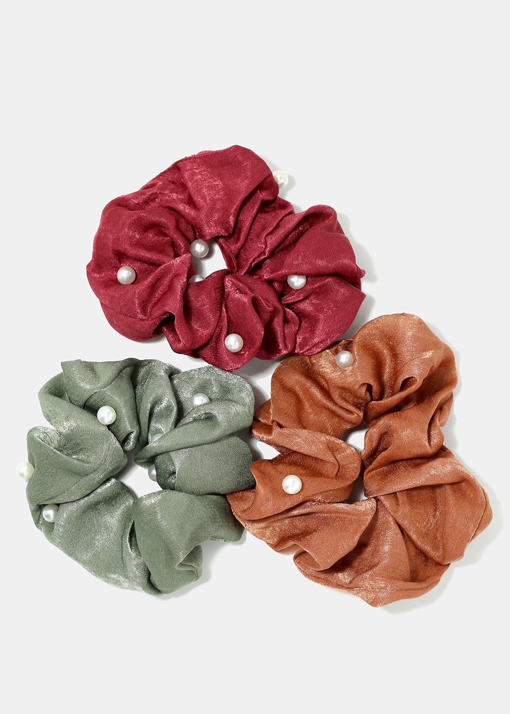 Pearl Studded Satin Scrunchies