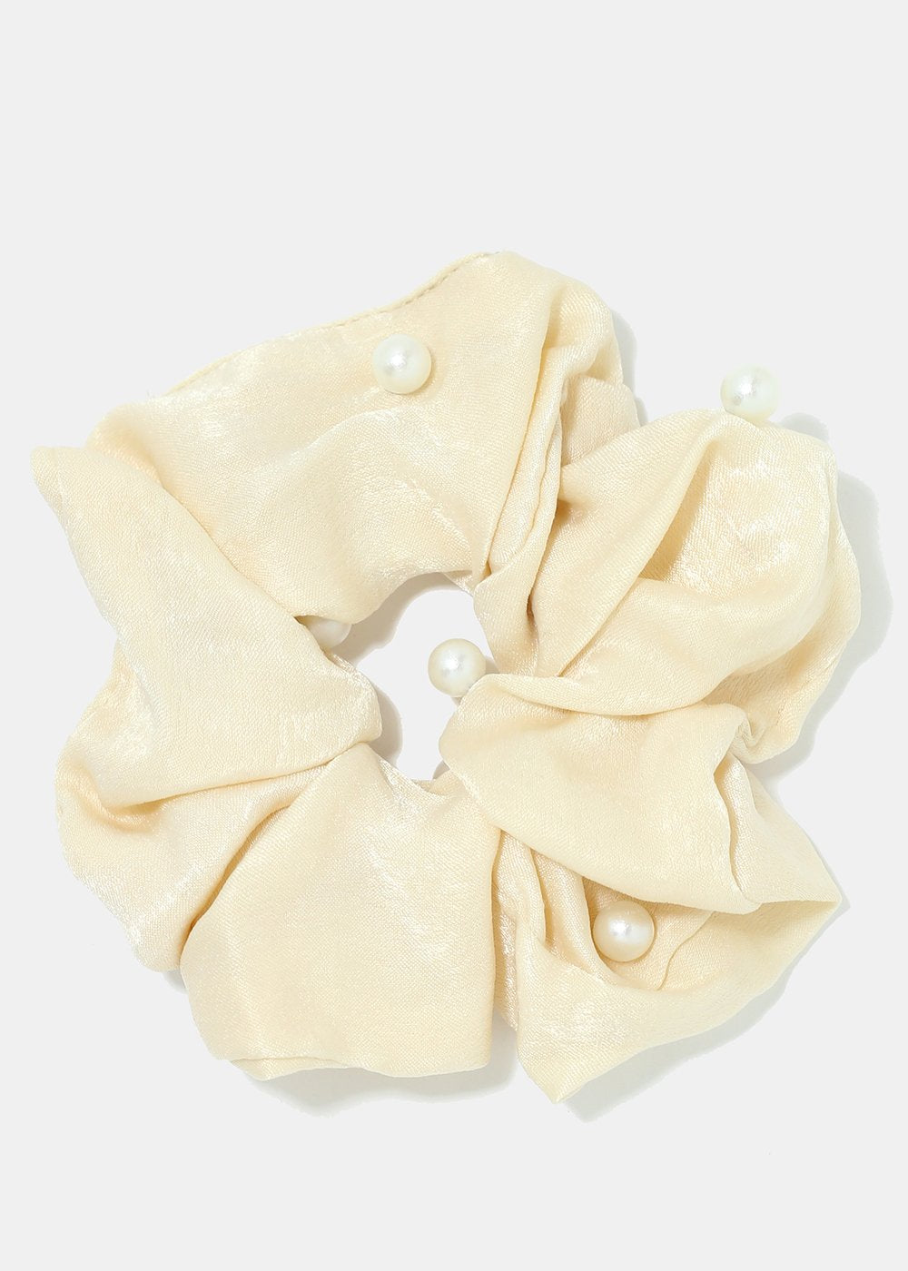 Pretty and soft pearl studded satin scrunchies. An everyday essential but in a stylish chic detail! Get ready to rock your ponytails with these girly and fun scrunchies!