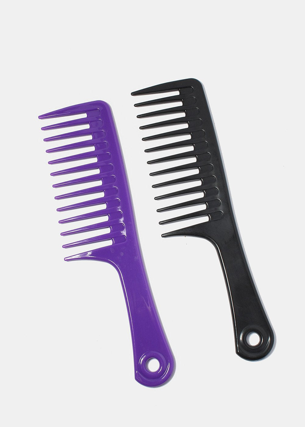 This rake handle comb is made to perfectly to comb large strips of hair for easy detangling. Comes in black and purple. One size.