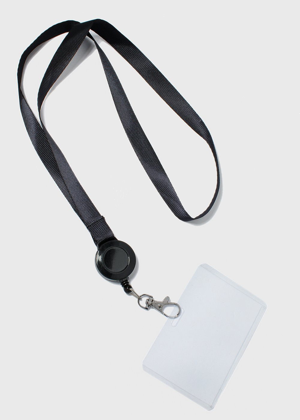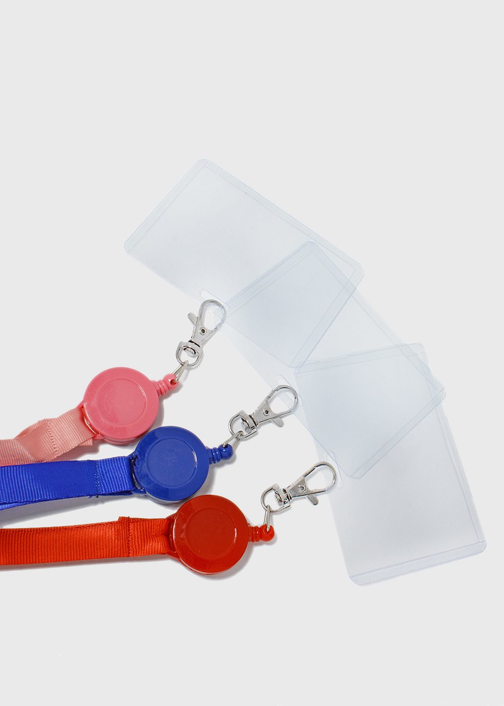 Clear ID holder on retractable lanyard. Keeps cards secure and conveniently on hand for school, events or work! Choose from four color options.