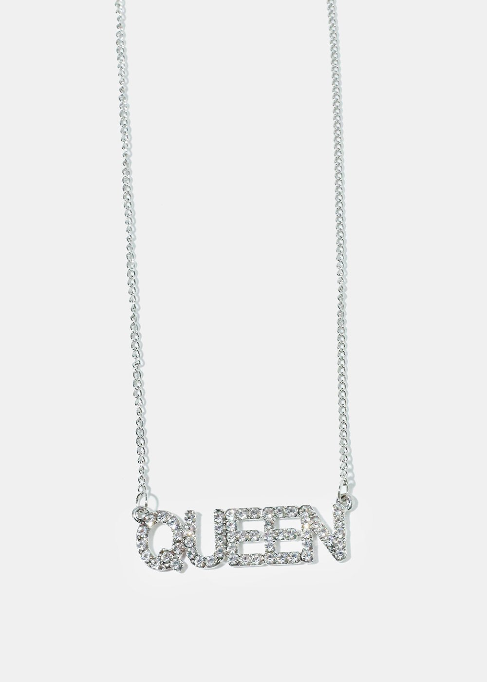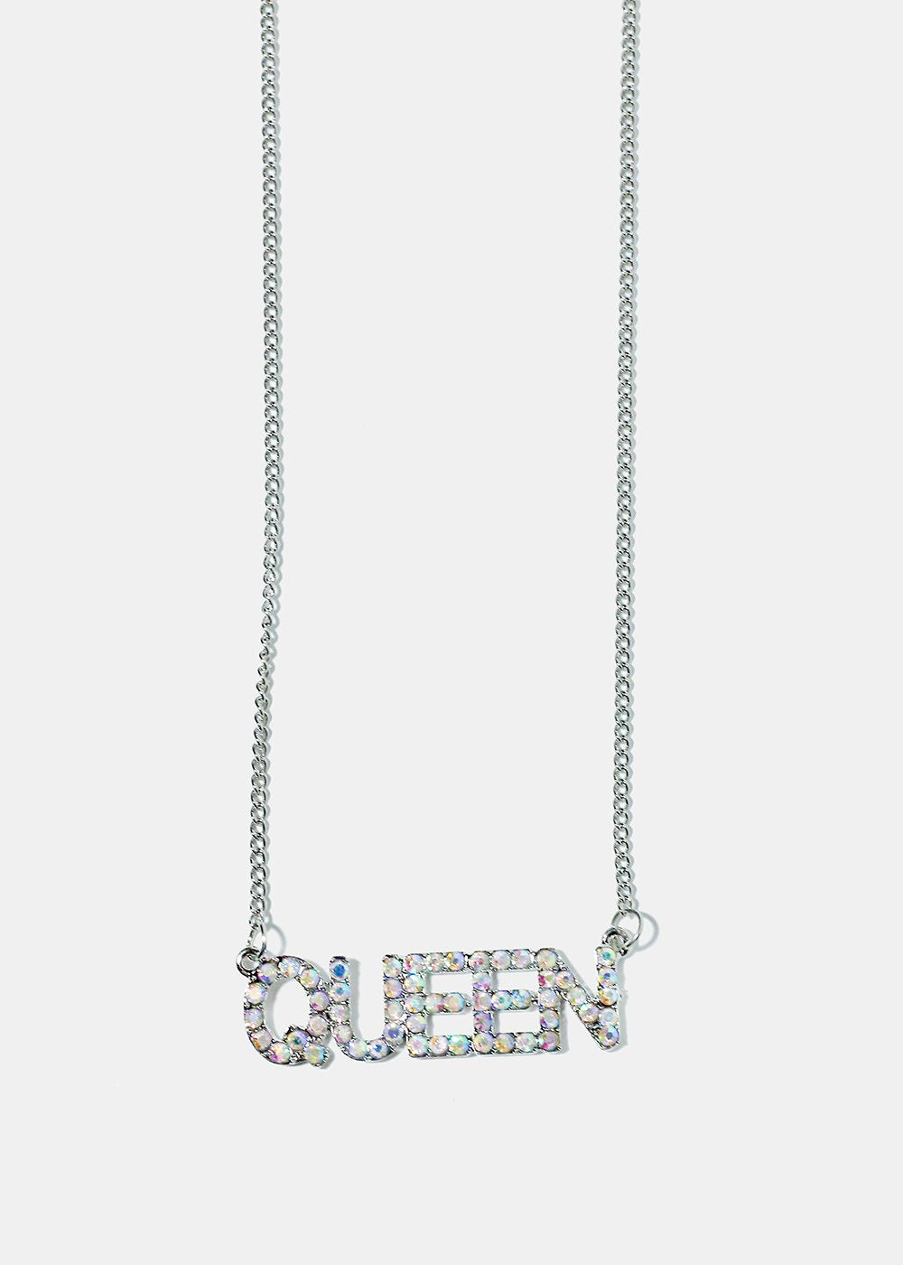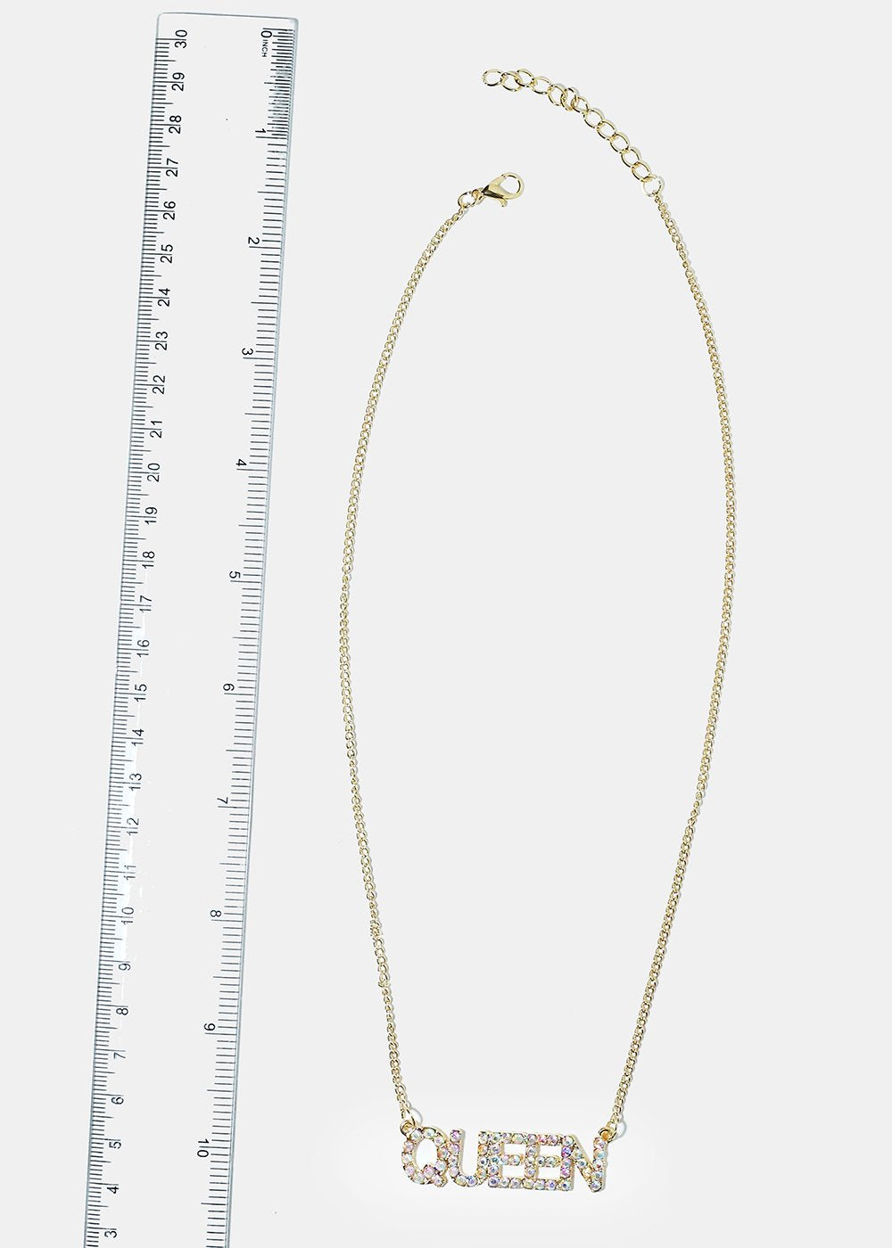 Show off the queen you are with this "QUEEN" pendant necklace covered in beautiful gleaming rhinestones! Perfect for a girls night out! A must-have in your collection!