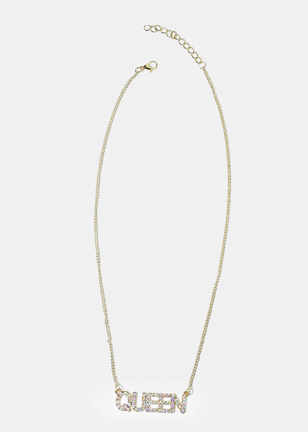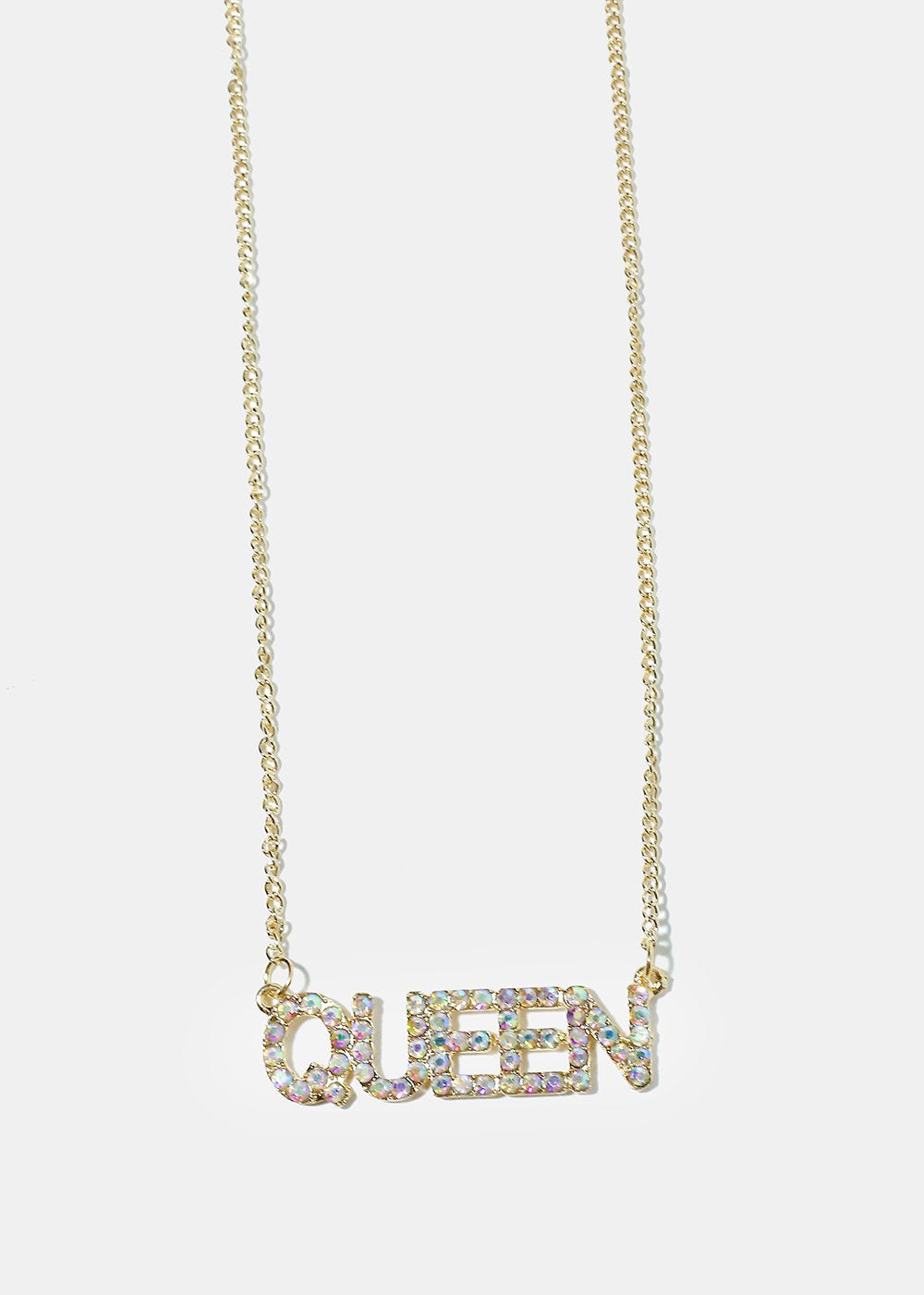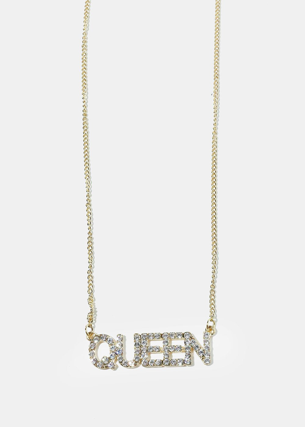 Show off the queen you are with this "QUEEN" pendant necklace covered in beautiful gleaming rhinestones! Perfect for a girls night out! A must-have in your collection!