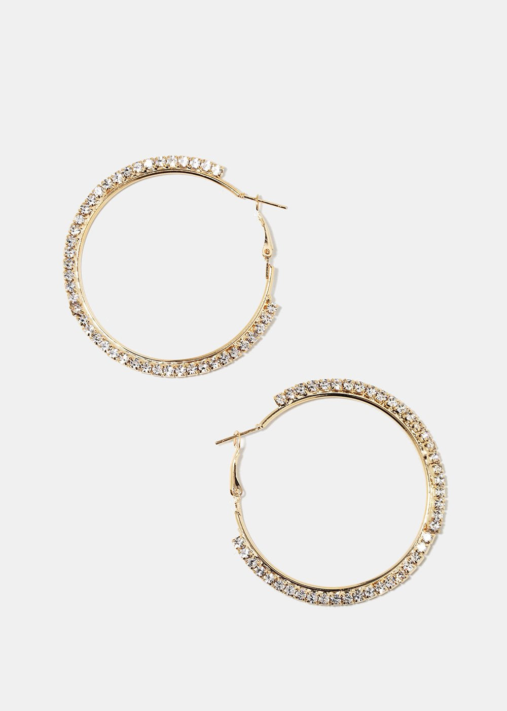 Go glam with your going out look with these hoop earrings adorned with sparkling rhinestone pavé. A fun finishing touch to your ensemble!