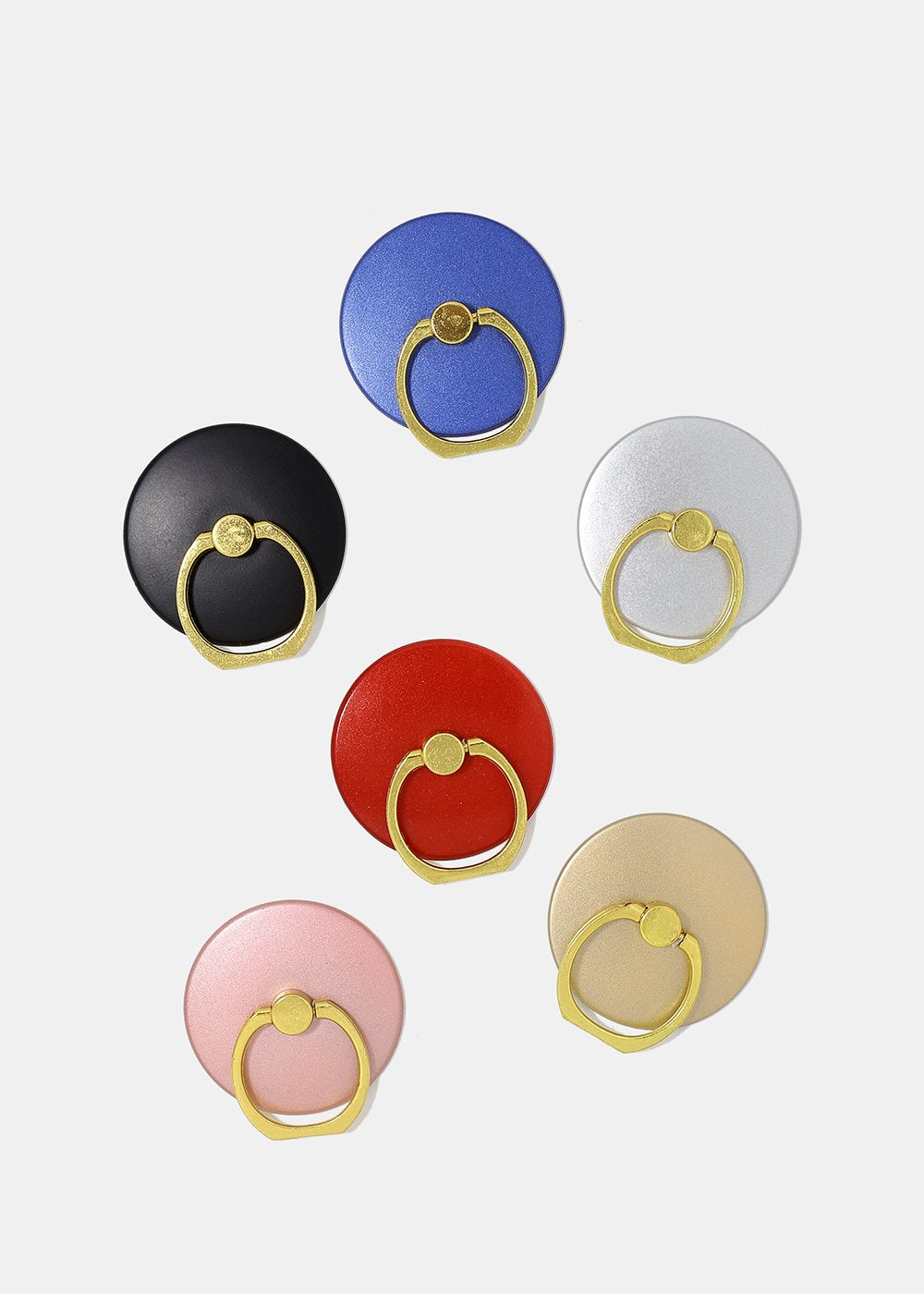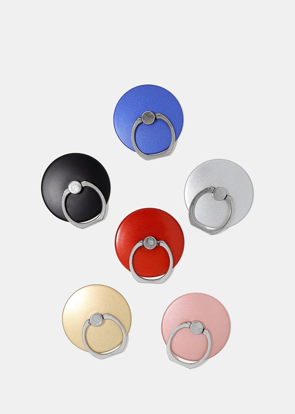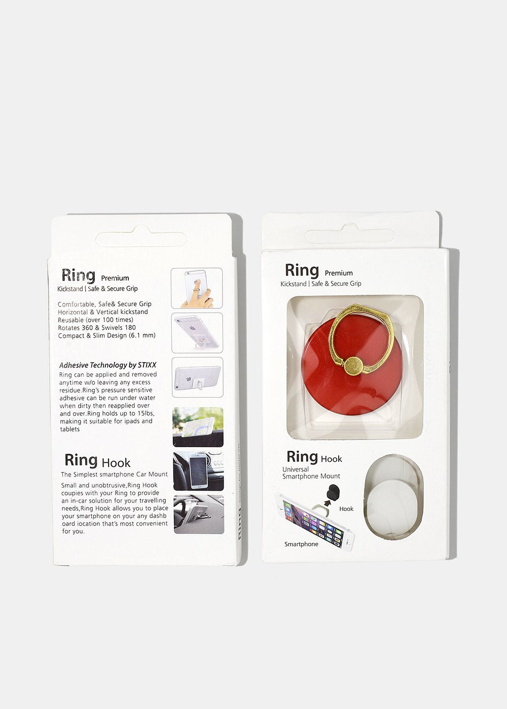 Round cell phone ring mount perfect for using as a kickstand or to hold phone more securely in hand. Easy to mount on any cell phone with flat surface and can be cleaned and reused! Includes hook that can be used in car to hold phone by ring for hands-free use.