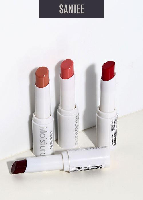 Santee Satin Moisture Lipstick- sleek white packaging and super moisturizing!