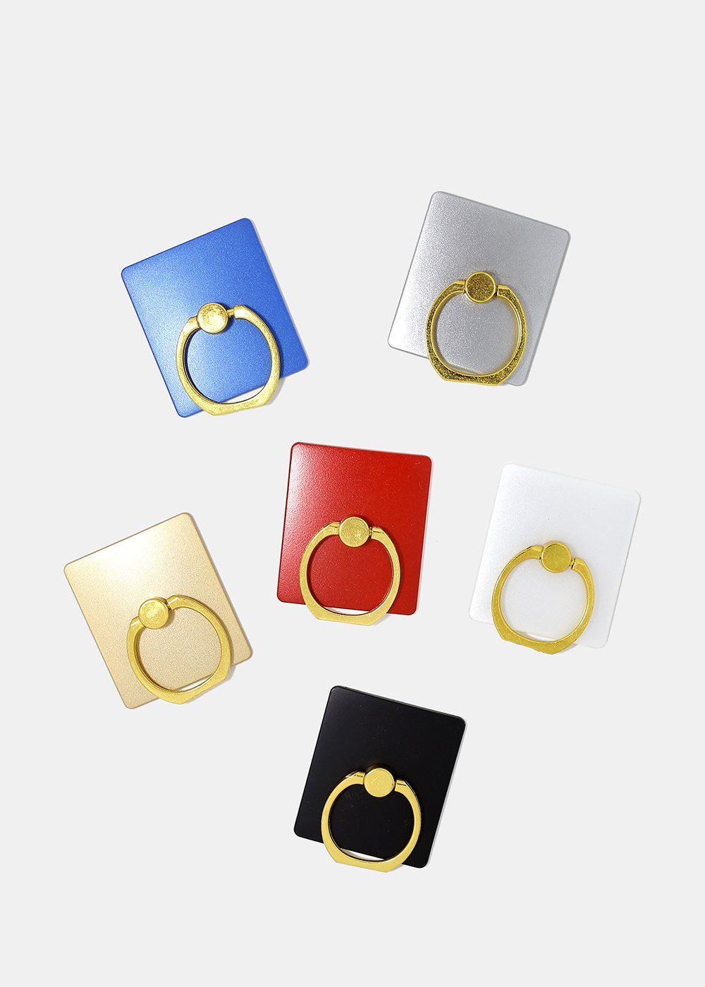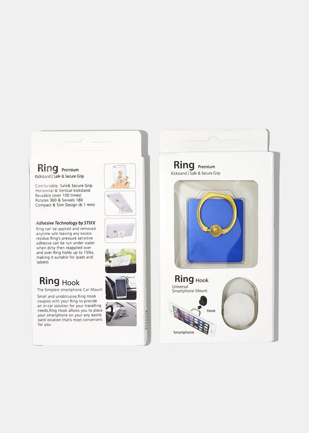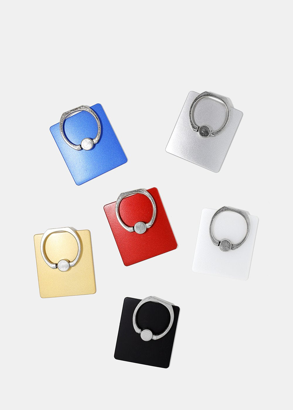 Square cell phone ring mount perfect for using as a kickstand or to hold phone more securely in hand. Easy to mount on any cell phone with flat surface and can be cleaned and reused! Includes hook that can be used in car to hold phone by ring for hands-free use.