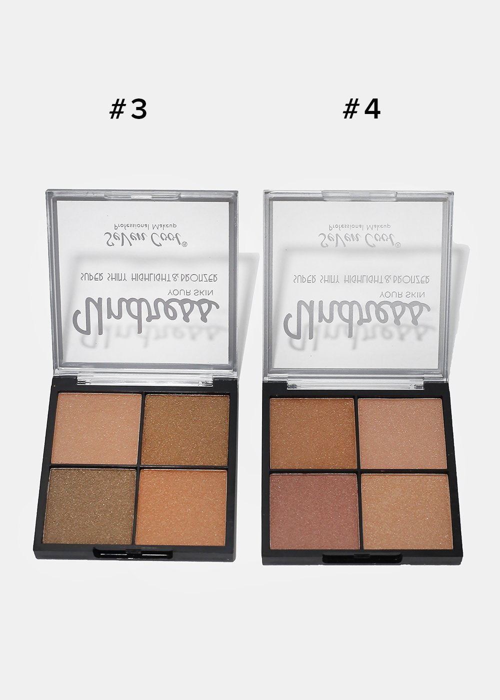 A 4 color highlighter and bronzer set! Glow like a goddess with this kit!