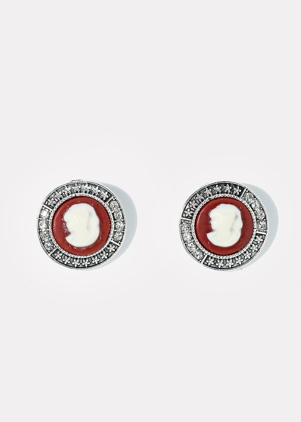 Combine this pair of textured woman profile stud earrings featuring small designs with rhinestones surrounding it to give a pop of shine to your look! A vintage and colorful look to your everyday wear!