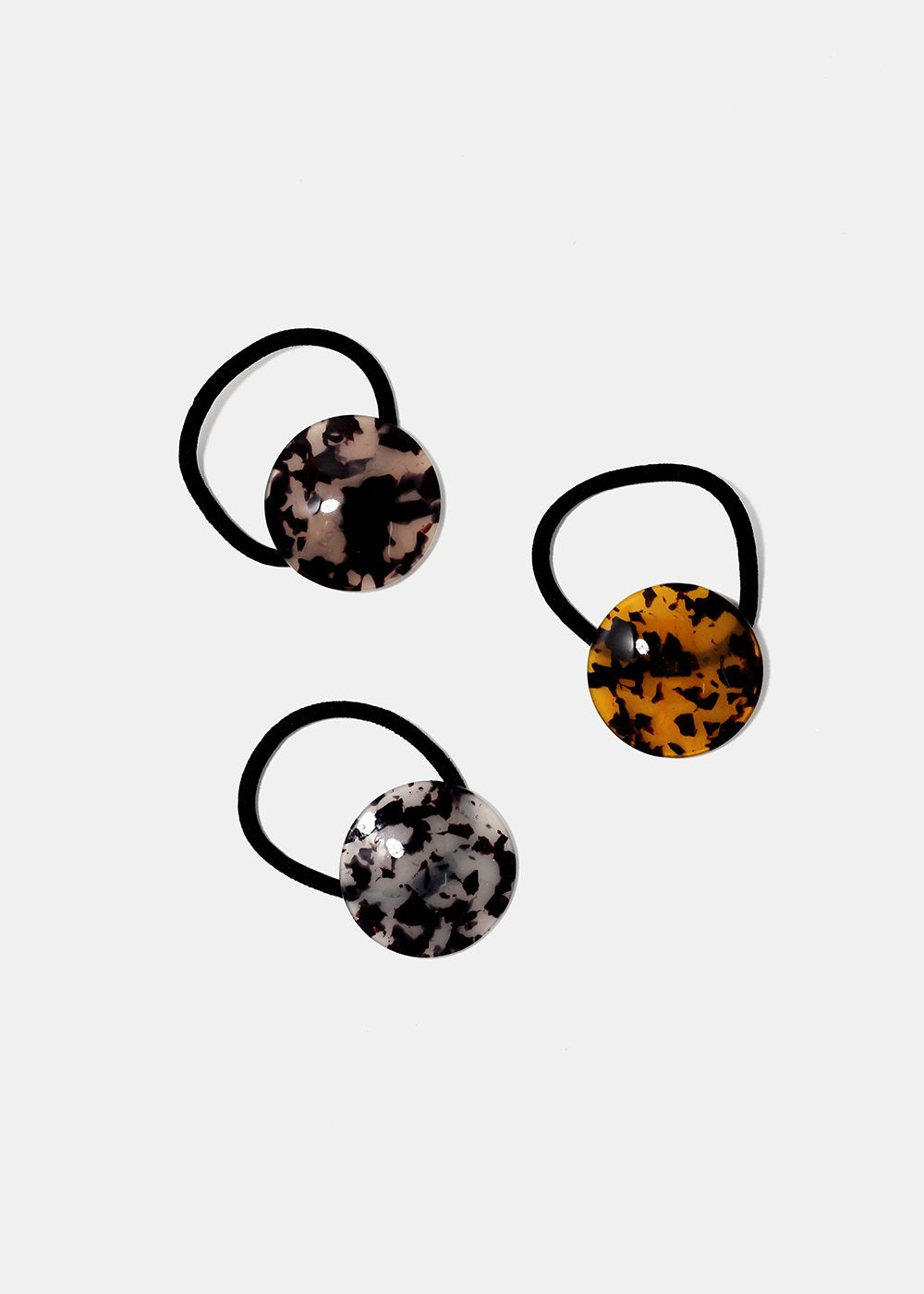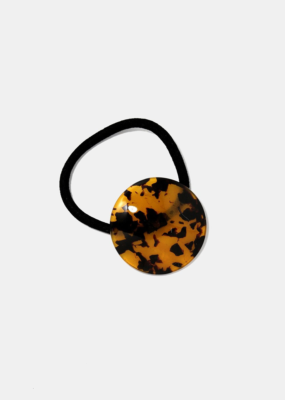 Black hair tie with tortoise design enamel disc. Adds a casually chic touch to an ordinary pony!