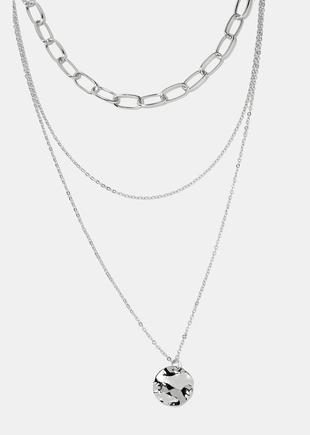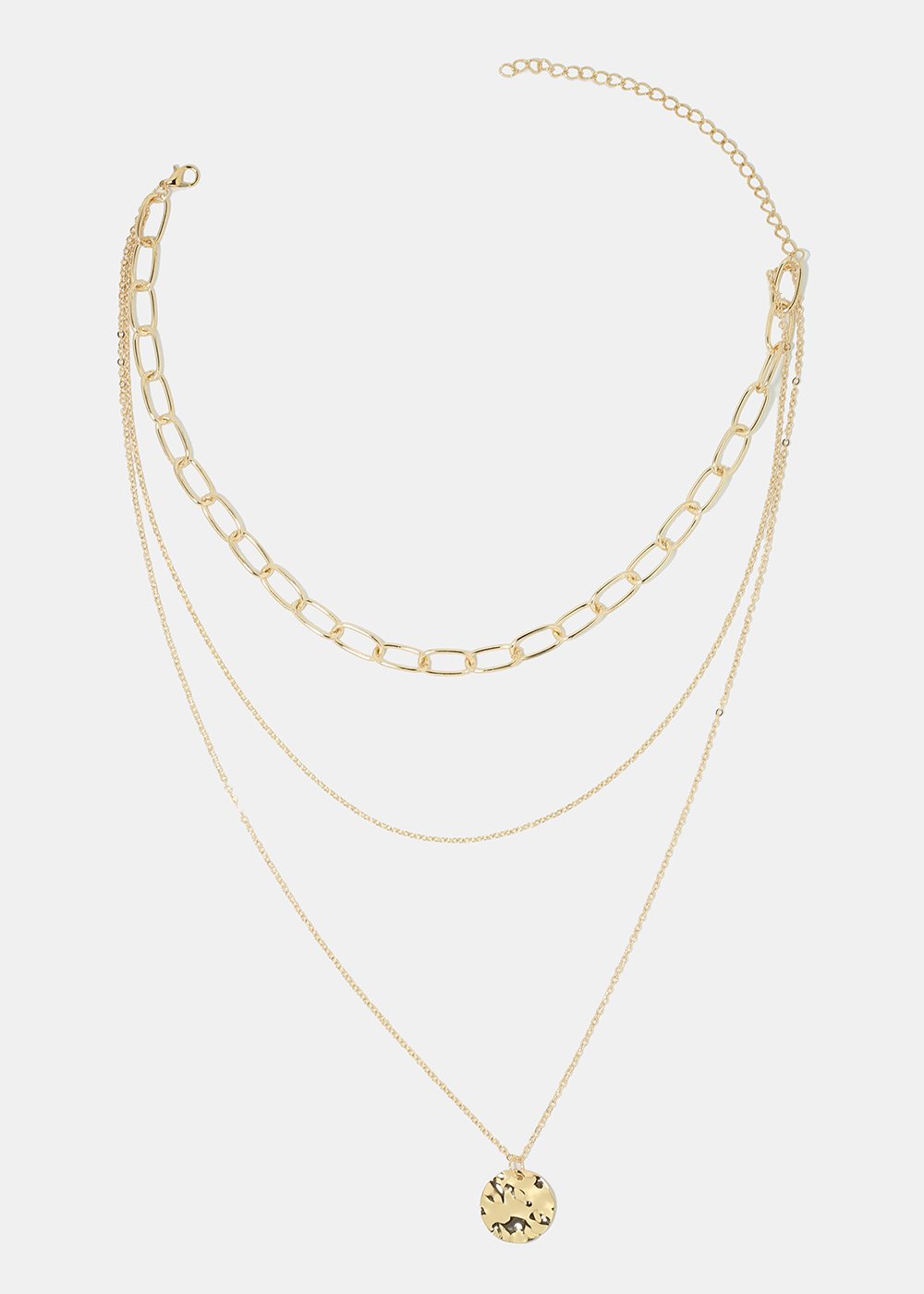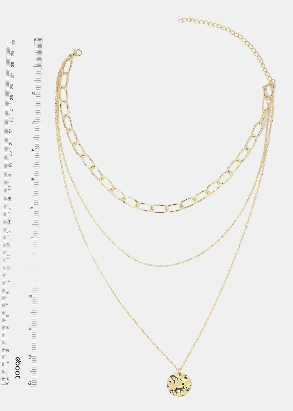 Elevate your outfit with this three layered chain necklace featuring 3 different lengths and sizes that give off a beautiful detailed look. Goes perfect with casual to night out looks!