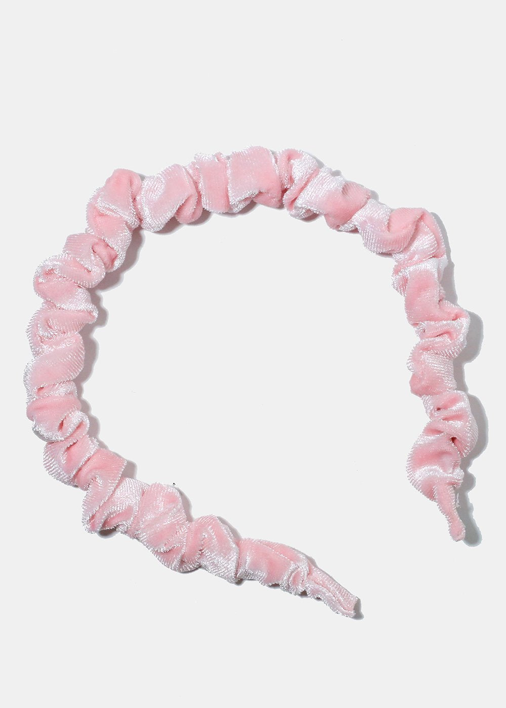 Soft velvet headband in a scrunched up detail in vibrant solid colors. Adds a pretty pop of color to your hair-do! The perfect touch to your look!