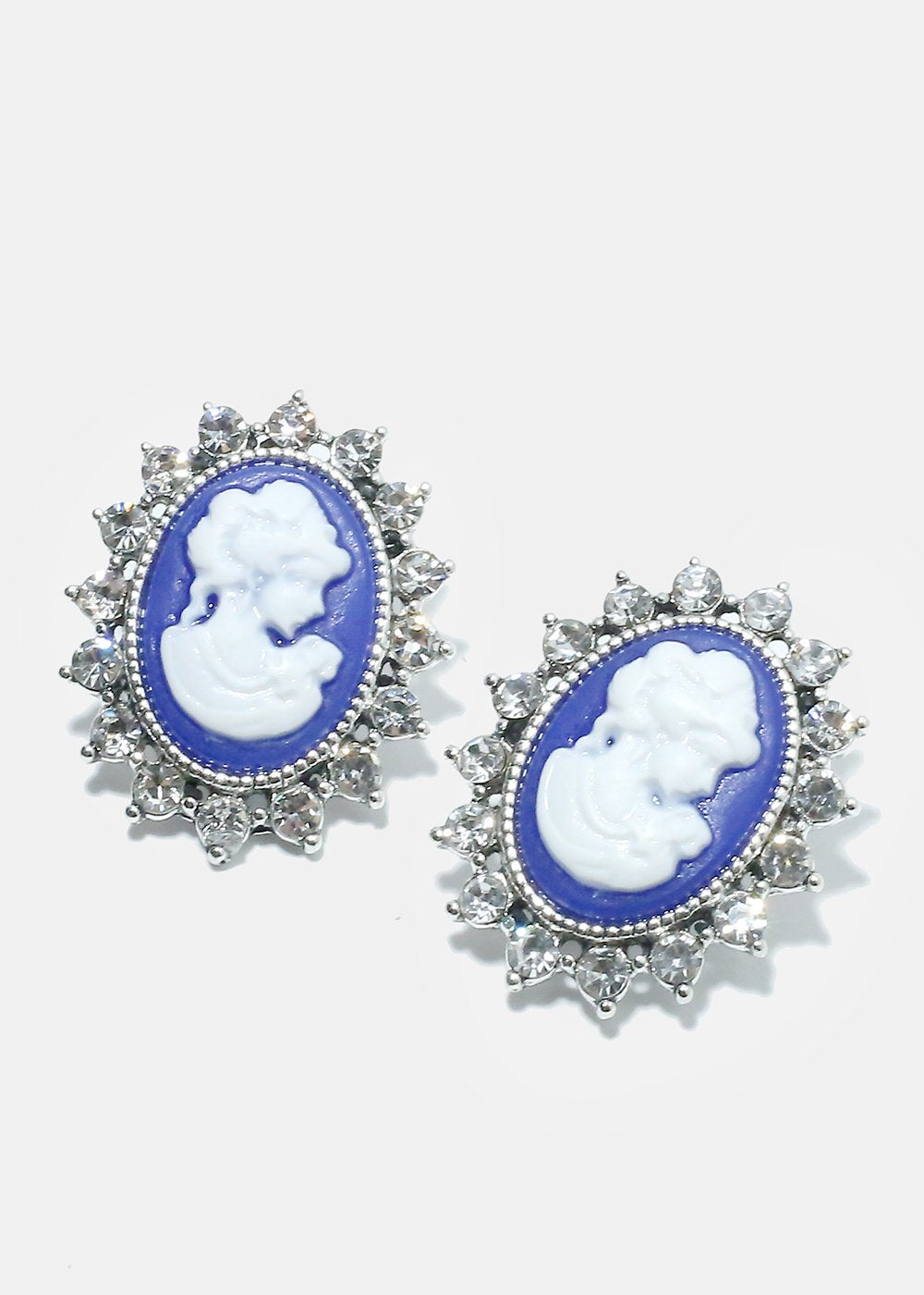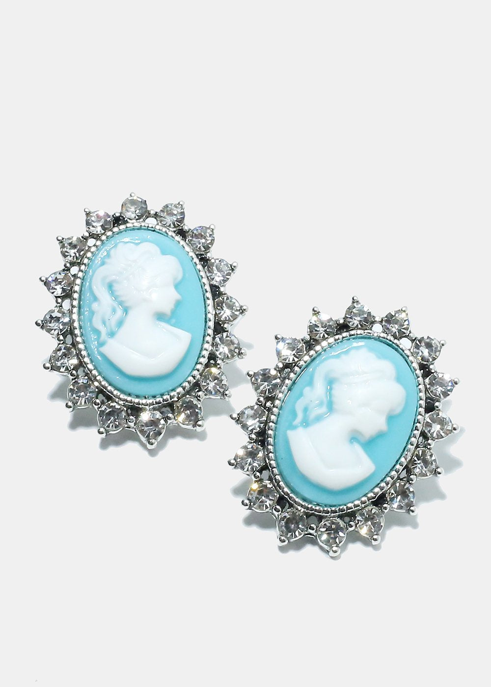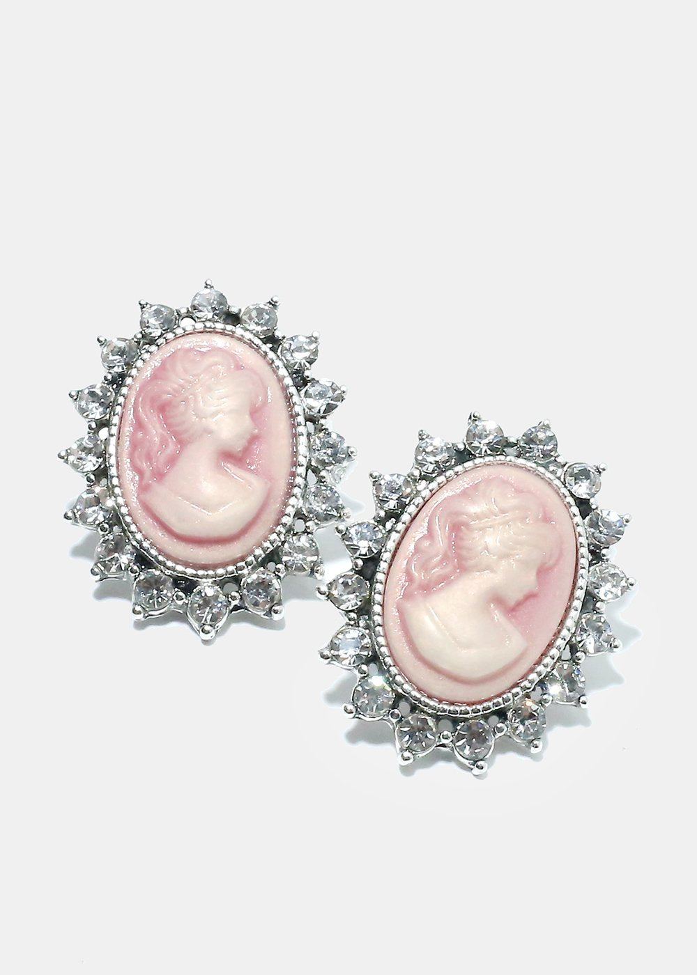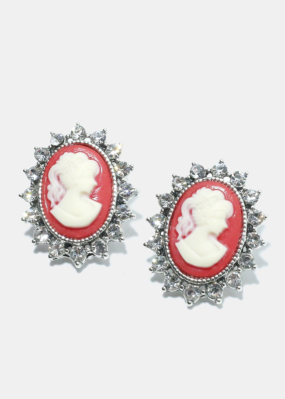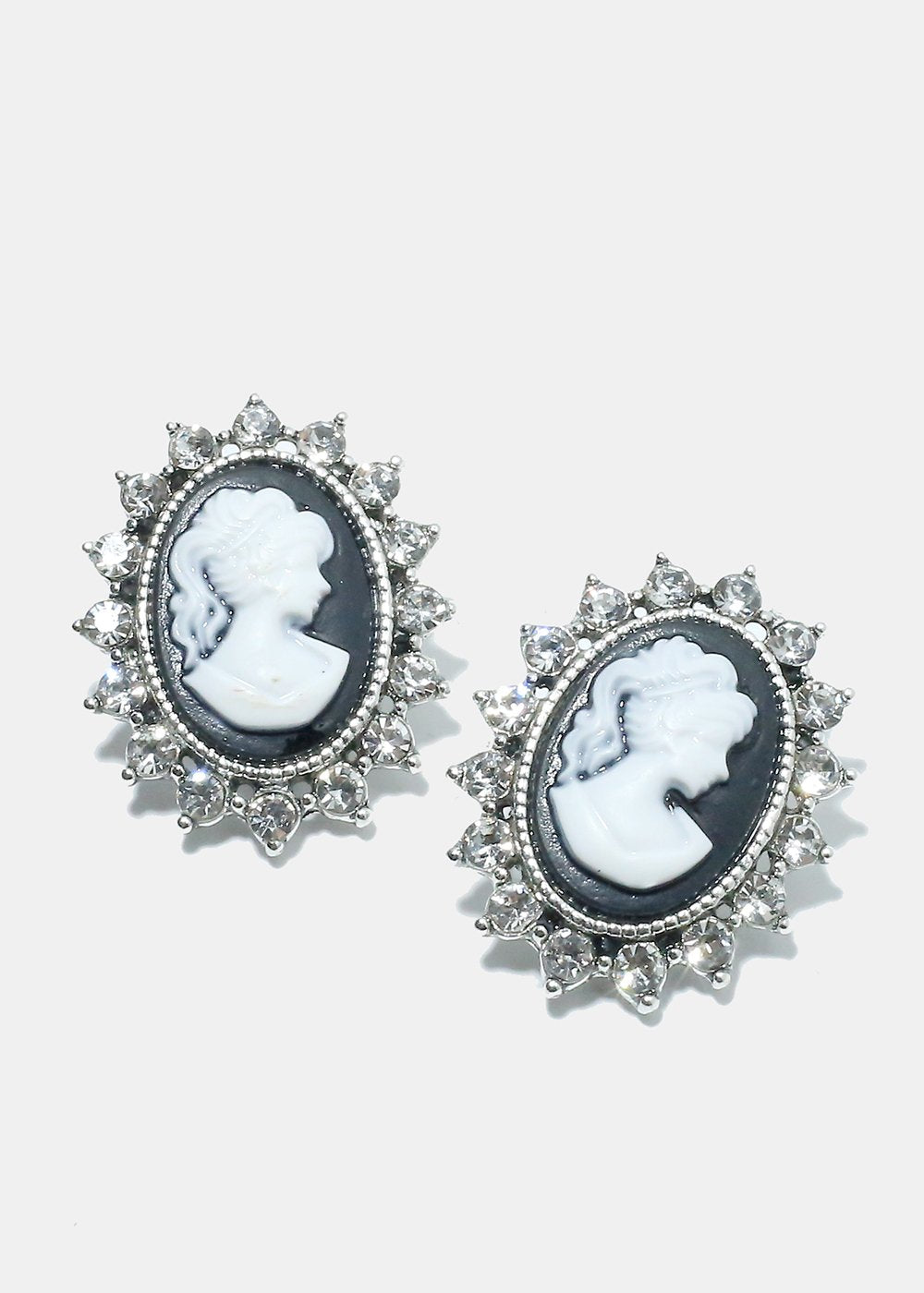 Get an antique pair of earrings featuring acameo style and rhinestones surrounding them! A beautiful addition to your look that adds style while giving you a chic look!